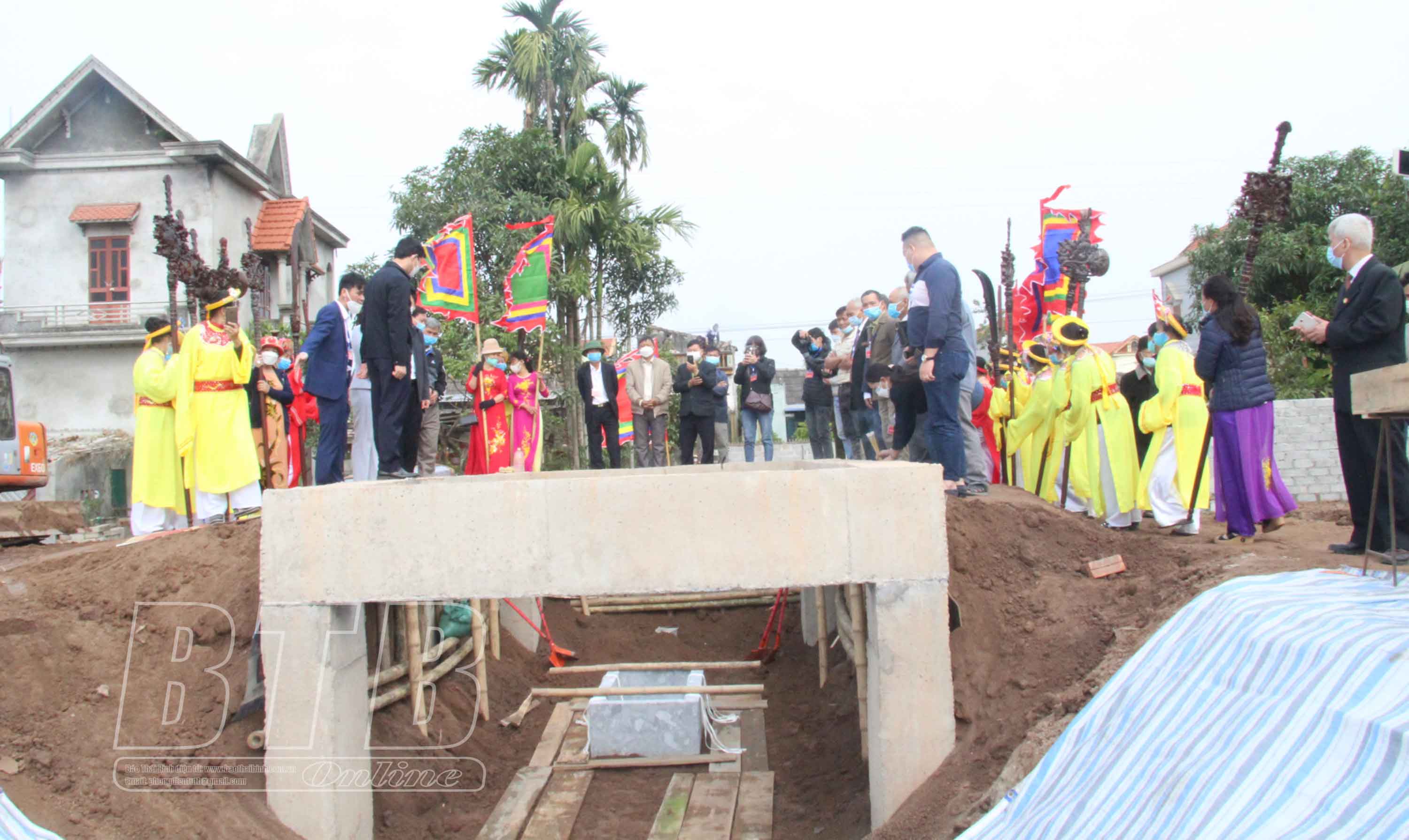 Các đại biểu dự lễ hoàn táng ngôi mộ cổ tại xã Tân Lễ (Hưng Hà).