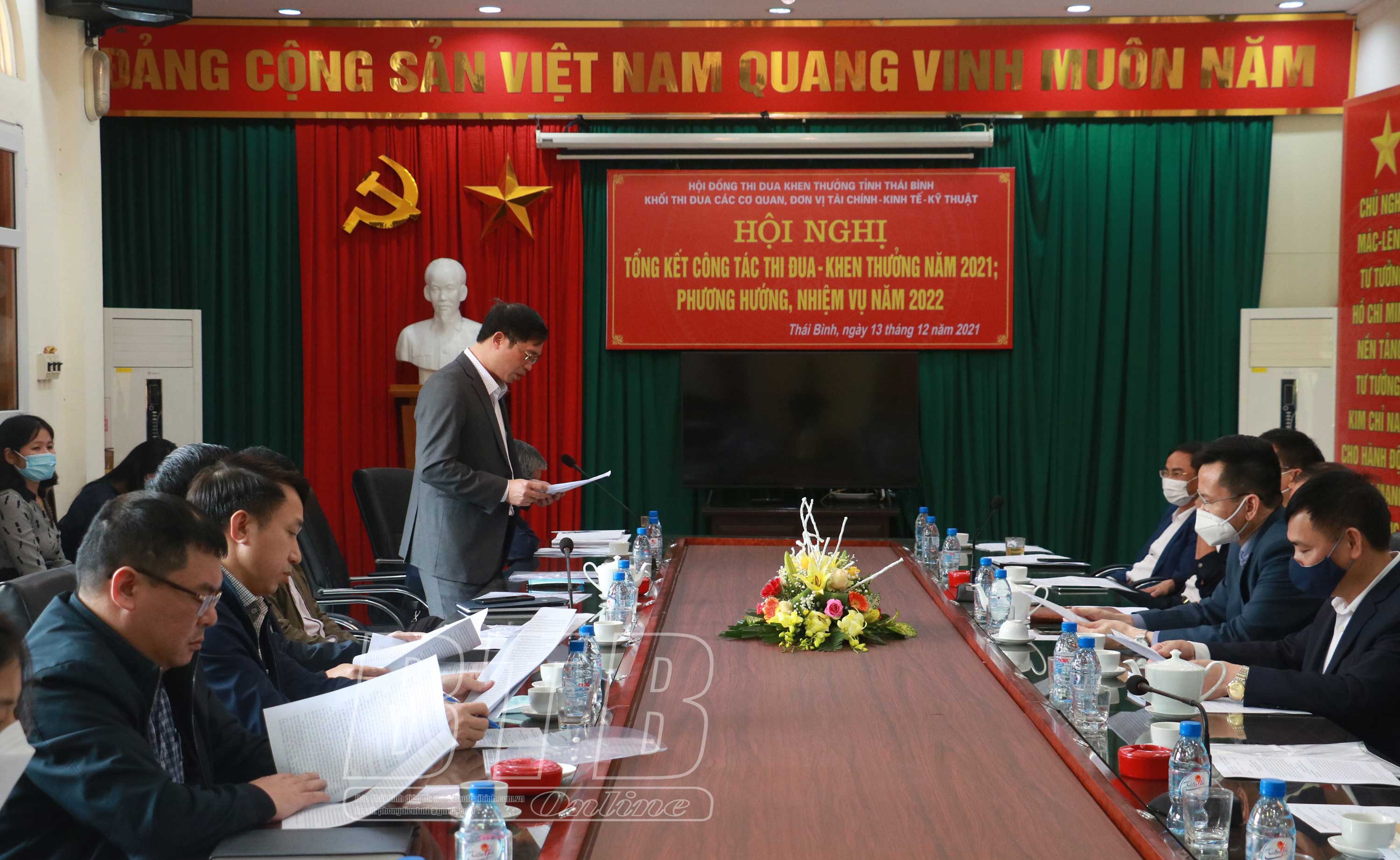 Đại diện khối thi đua các cơ quan, đơn vị tài chính, kinh tế, kỹ thuật báo cáo công tác thi đua, khen thưởng năm 2021.