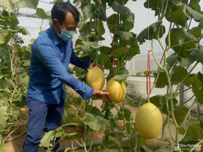 Mô hình trồng dưa lưới ở xã Văn Thành (Yên Thành). Ảnh: Văn Trường.