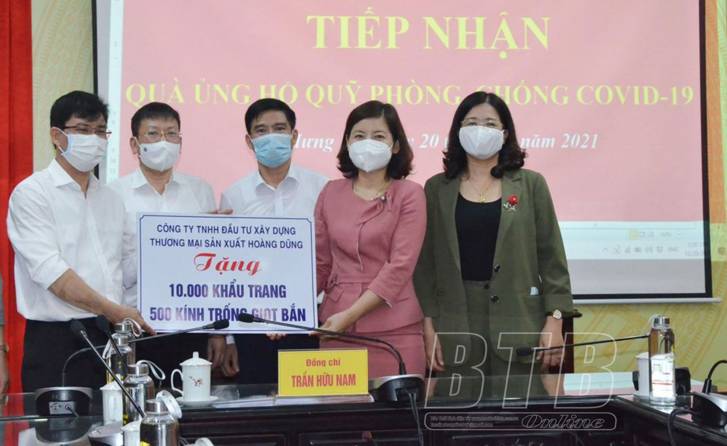 Công ty TNHH Đầu tư thương mai, sản xuất Hoàng Dũng trao tặng 10.000 khẩu trang và 500 kính chắn giọt bắn phục vụ công tác phòng, chống dịch Covid-19.