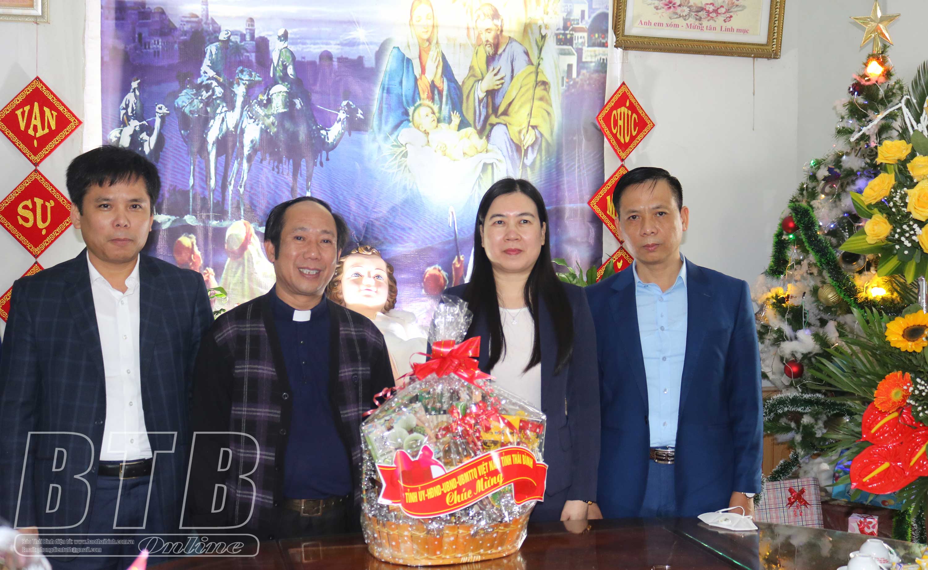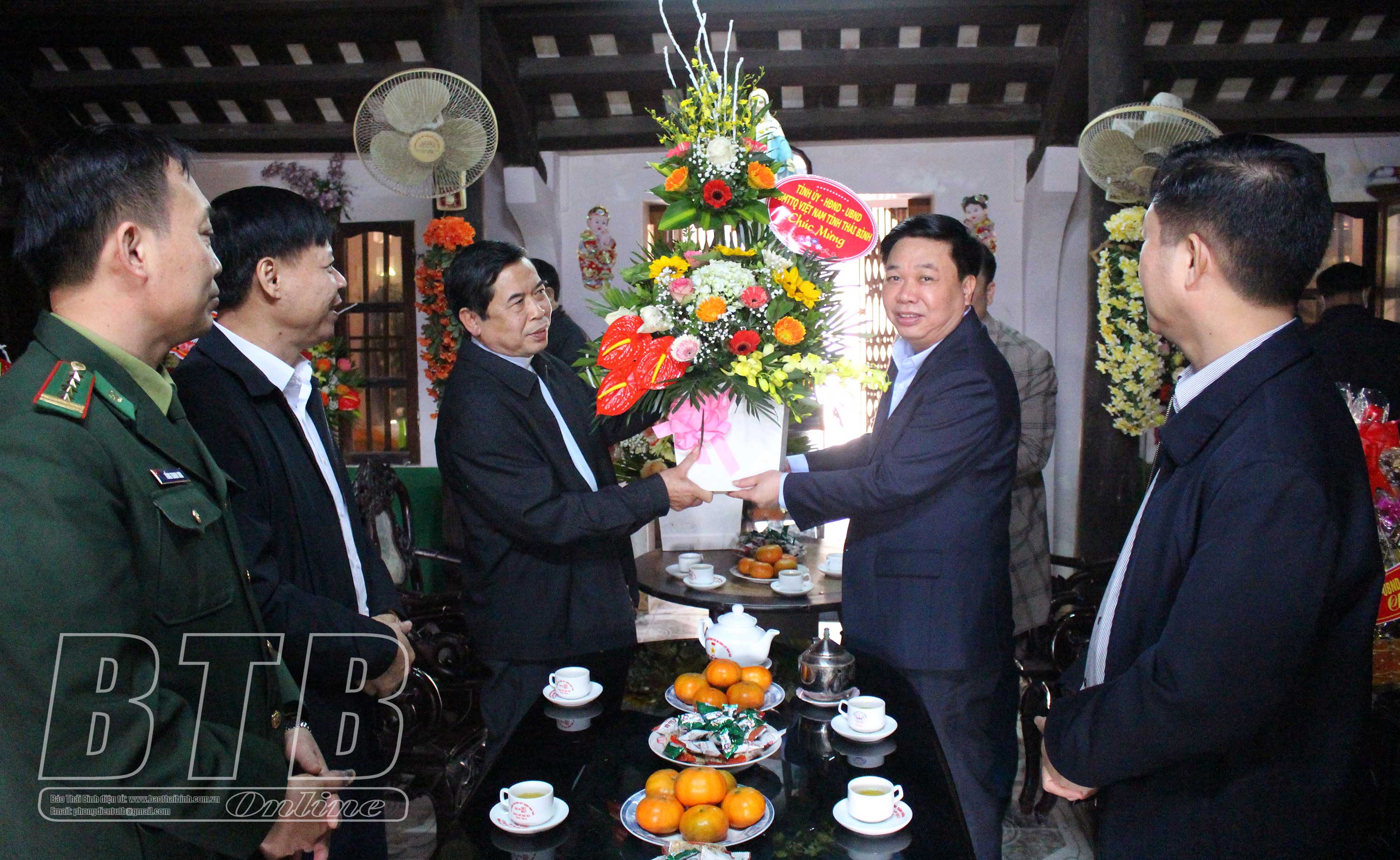 Đồng chí Nguyễn Quang Hưng, Ủy viên Ban Thường vụ Tỉnh ủy, Phó Chủ tịch thường trực UBND tỉnh cùng các đồng chí lãnh đạo Bộ Chỉ huy Bộ đội Biên phòng tỉnh, huyện Thái Thụy đã đến thăm, chúc mừng linh mục Nguyễn Văn Kha, Chánh xứ Vạn Đồn, xã Hồng Dũng; linh mục Phạm Công Dũng, Hạt trưởng hạt Thái Thụy, Chánh xứ Thượng Phúc, xã Thụy Sơn (huyện Thái Thụy).