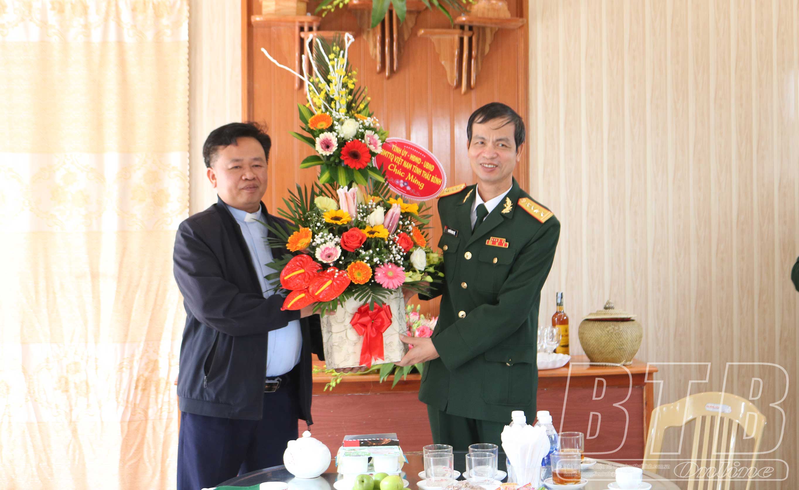 Đại tá Nguyễn Ngọc Tuệ, Ủy viên Ban Thường vụ Tỉnh ủy, Chỉ huy trưởng Bộ CHQS tỉnh đã đến thăm, chúc mừng linh mục Nguyễn Ngọc Hinh, Hạt trưởng hạt Đông Hưng, Chánh xứ An Lập, xã Hồng Giang và linh mục Đặng Văn Diễn, Chánh xứ Bơn Làng, xã Hồng Bạch (huyện Đông Hưng).