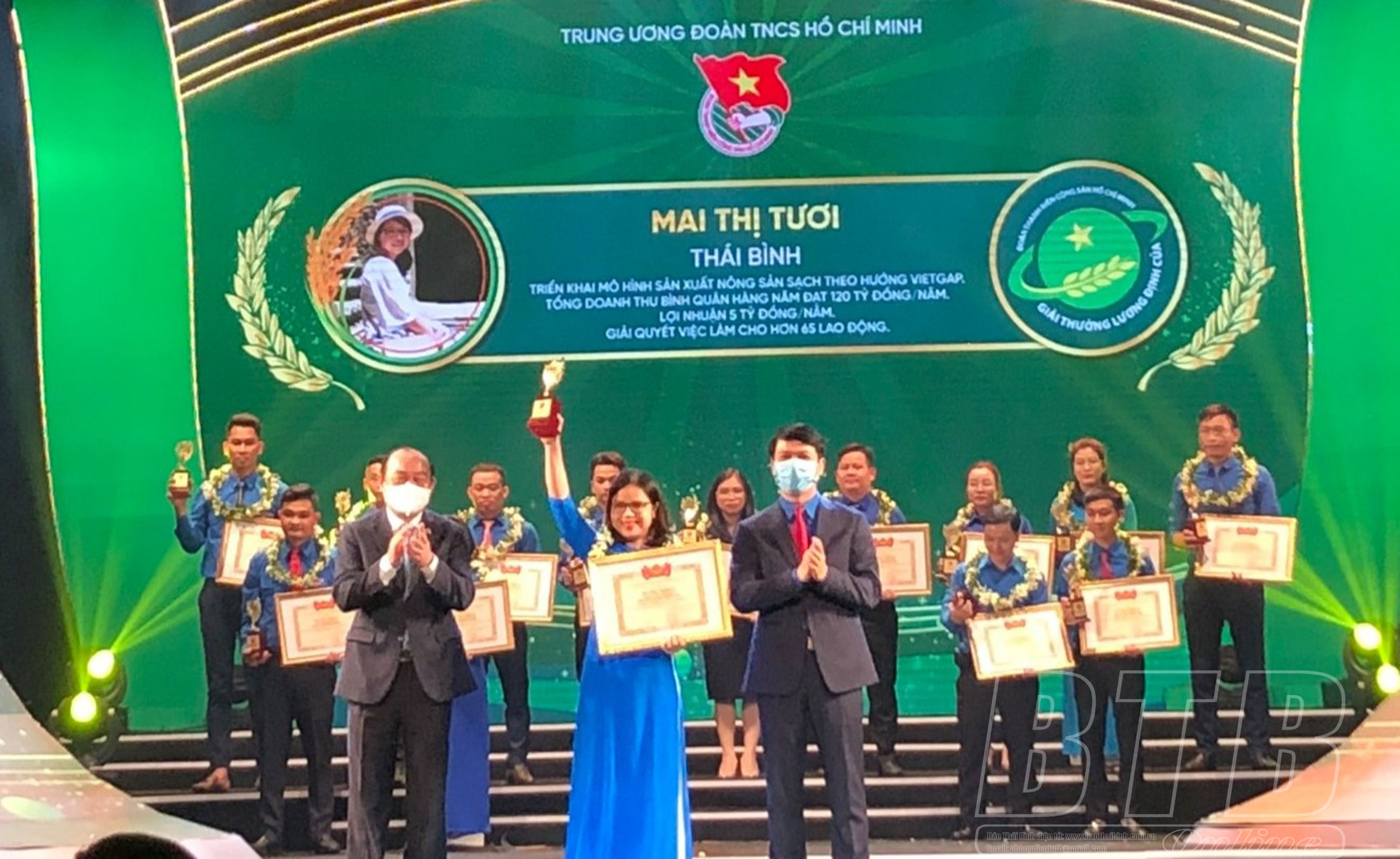 Trong số 57 thanh niên xuất sắc trên toàn quốc được lựa chọn để trao giải thưởng Lương Định Của lần thứ XVI, tỉnh Thái Bình có 2 cá nhân là chị Mai Thị Tươi, Phó Tổng giám đốc Công ty Cổ phần Thương mại tổng hợp Toan Vân (thành phố Thái Bình) và anh Nguyễn Duy Phiên, thôn Nam Lâu, xã Thanh Tân (Kiến Xương).