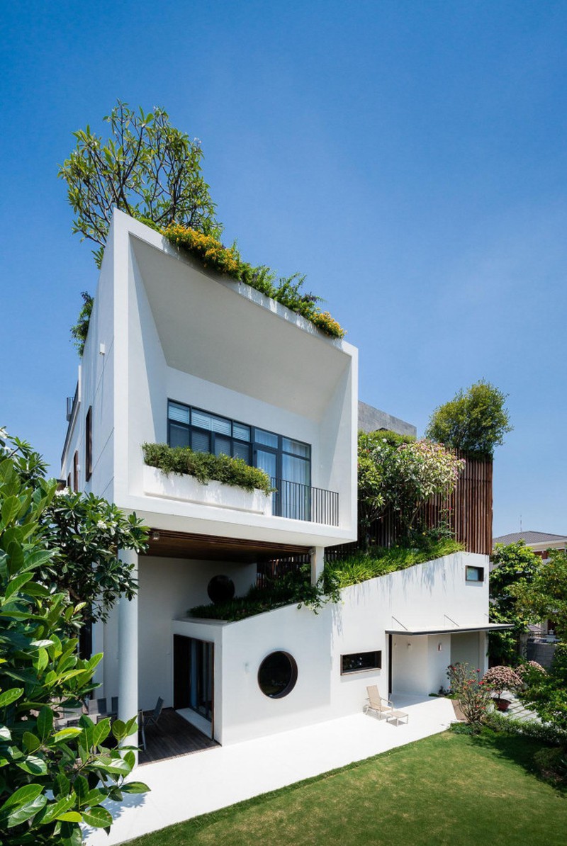 Chủ đầu tư của công trình này là hai vợ chồng doanh nhân. Trong khi người chồng yêu thích phong cách độc đáo và sáng tạo thì người vợ lại thích những gì thiết thực và tiện lợi. Để đáp ứng nhu cầu của cả hai, kiến trúc sư (KTS) đã tạo ra ngôi biệt thự màu trắng trong hình.