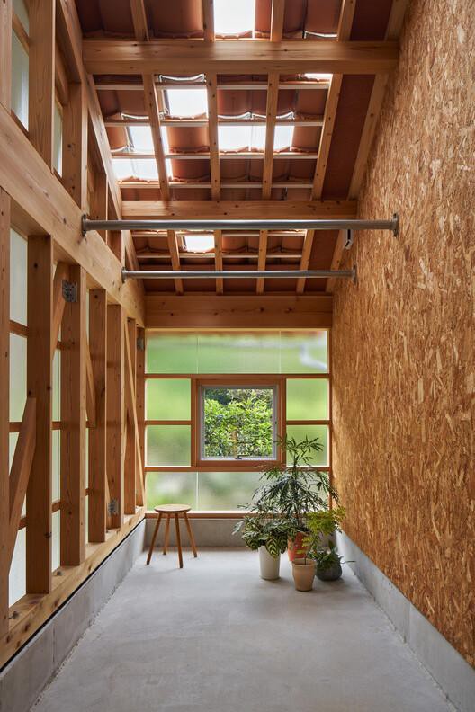 Lối vào nhà hàng ngày thông qua nhà để xe ở đầu phía đông và phòng tắm nắng, cũng là nơi chắn gió và khu vực phơi đồ.