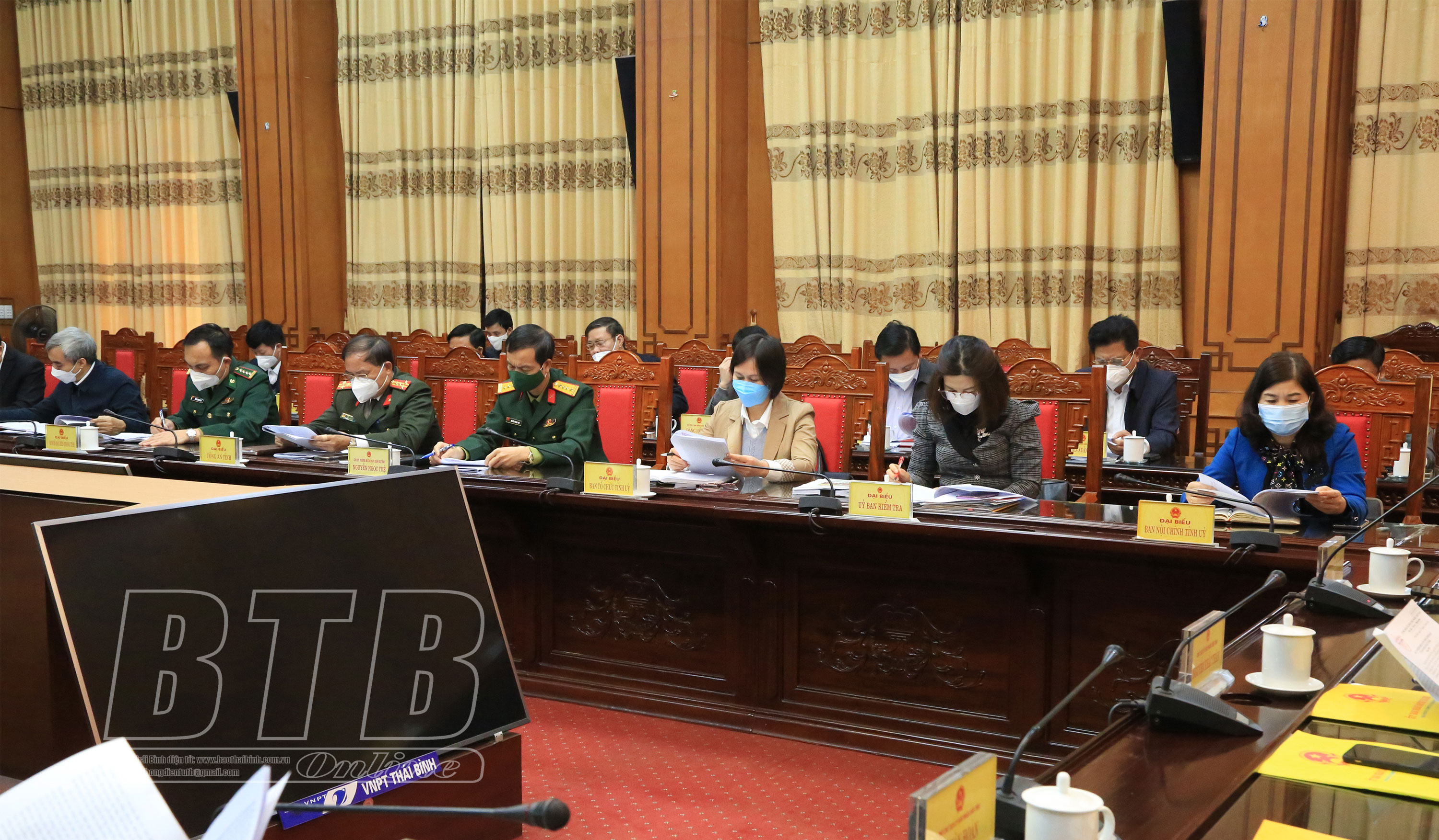 Đồng chí Phó Bí thư Tỉnh ủy, Chủ tịch UBND tỉnh thống nhất, trên cơ sở chỉ ra những tồn tại thời gian qua, trong năm 2022, toàn tỉnh cần tập trung đẩy mạnh cải cách thủ tục hành chính, thúc đẩy thu hút đầu tư để phát triển kinh tế, xã hội của tỉnh. Các sở, ngành, địa phương cần giải quyết dứt điểm các “điểm nghẽn” để thúc đẩy kinh tế, xã hội khởi sắc hơn. Trước mắt thực hiện tốt các nhiệm vụ trước, trong, sau tết Nguyên đán Nhâm Dần 2022 theo kế hoạch như tổng kết thi đua, bảo đảm an ninh trật tự, giao nhận quân, giao nộp ngân sách nhà nước, kỷ niệm 55 năm Bác Hồ về thăm Thái Bình lần thứ năm, tập trung sản xuất nông nghiệp, công nghiệp, thương mại ngay từ đầu năm mới, đẩy mạnh các hoạt động văn hóa mừng Đảng mừng Xuân…