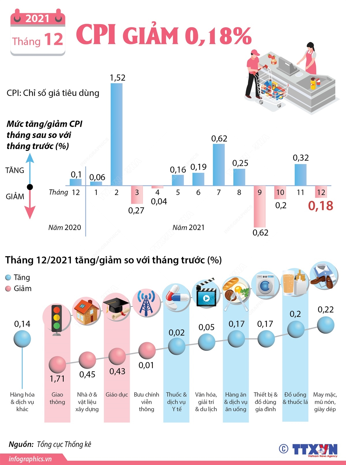 CPI tháng 12/2021 giảm 0,18%