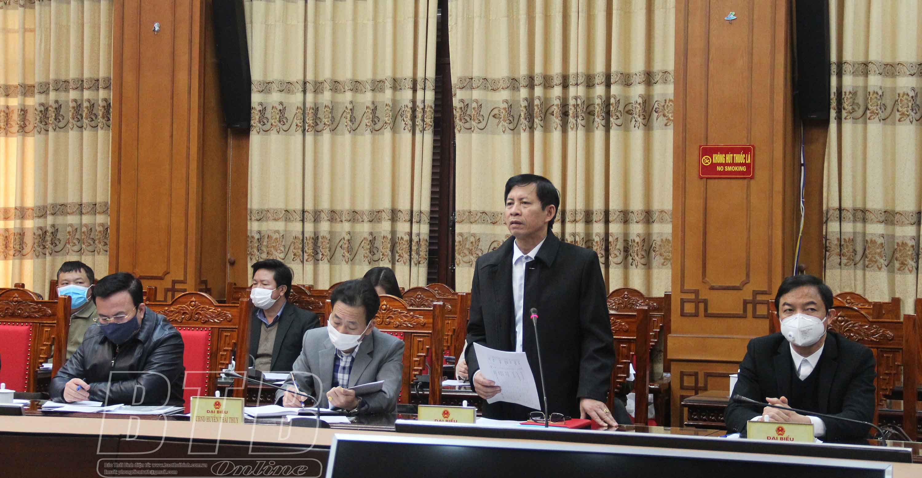 Lãnh đạo huyện Kiến Xương phát biểu tại cuộc họp.