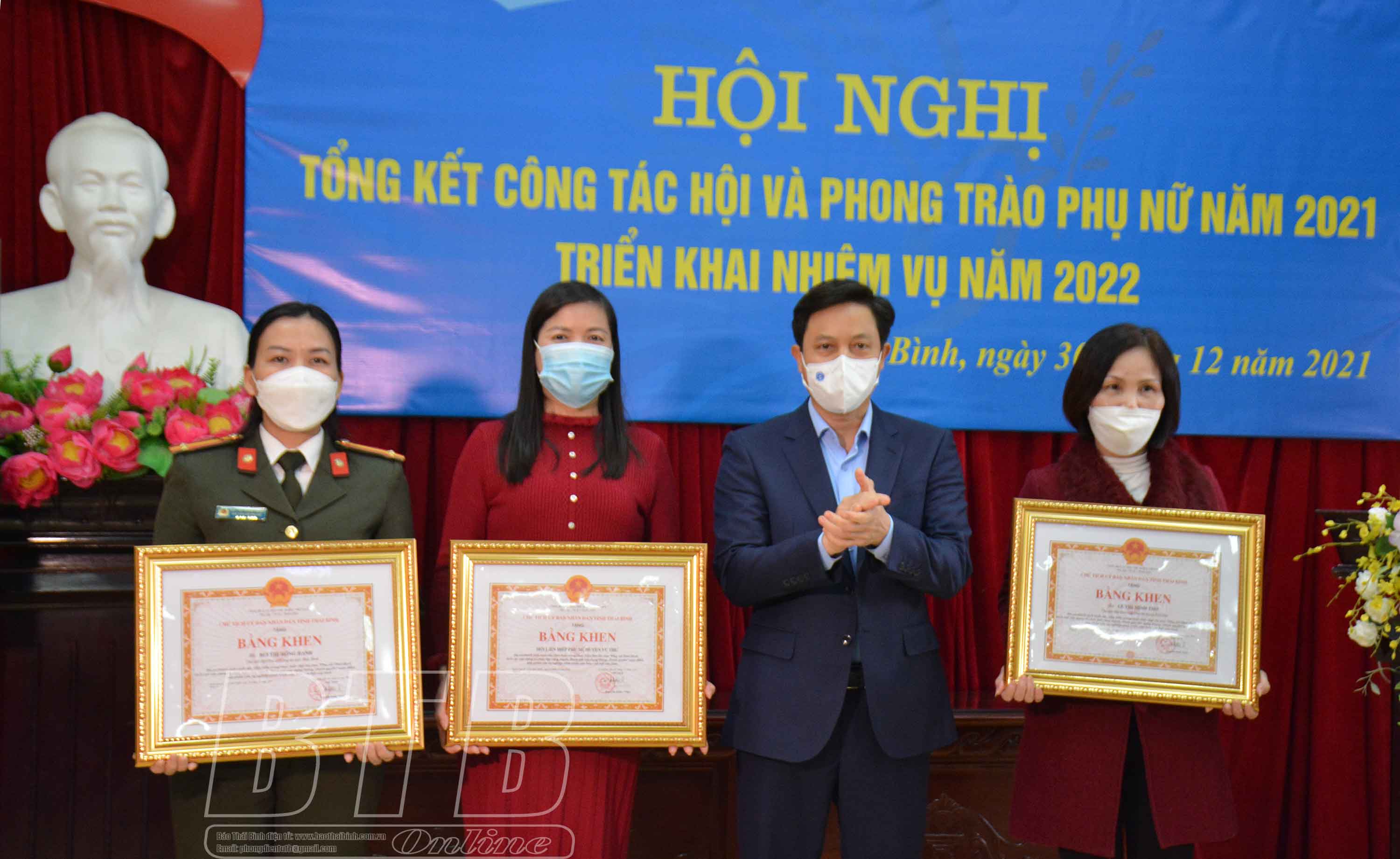 Tại hội nghị, các tập thể, cá nhân có thành tích xuất sắc được Trung ương Hội Liên hiệp Phụ nữ Việt Nam, UBND tỉnh, Hội Liên hiệp Phụ nữ tỉnh khen thưởng. Hội liên hiệp phụ nữ các huyện, thành phố và các đơn vị đã ký giao ước thi đua năm 2022.