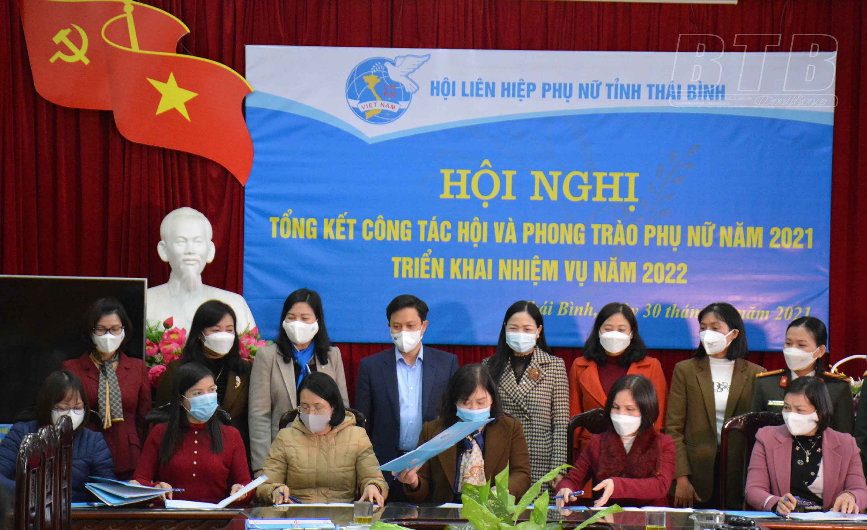 Hội liên hiệp phụ nữ các huyện, thành phố và các đơn vị ký giao ước thi đua năm 2022.