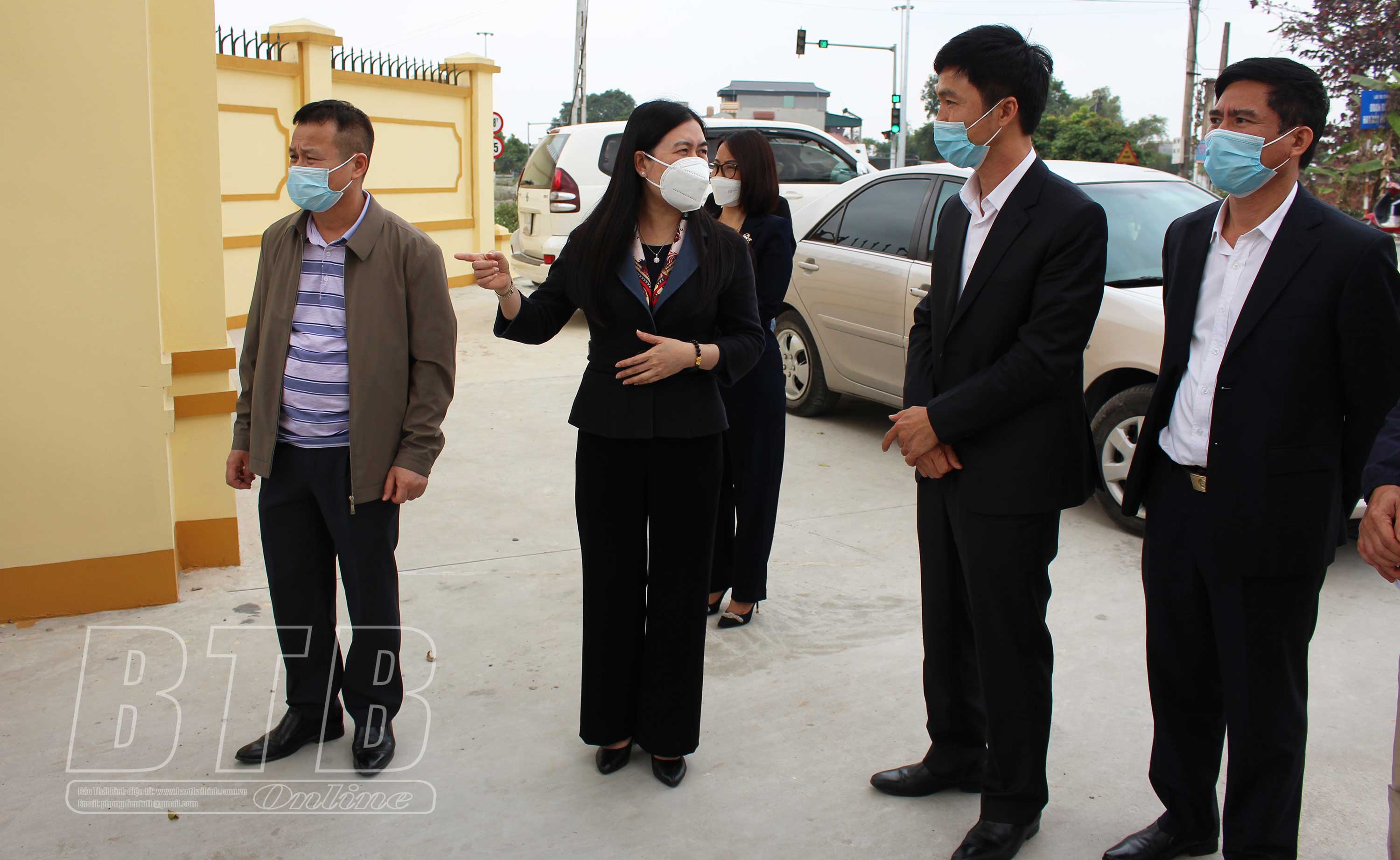 Đồng chí Trần Thị Bích Hằng, Phó Chủ tịch UBND tỉnh, Phó Trưởng ban thường trực Ban Chỉ đạo phòng, chống dịch Covid-19 tỉnh kiểm tra công tác phòng, chống dịch tại thị trấn Hưng Hà.