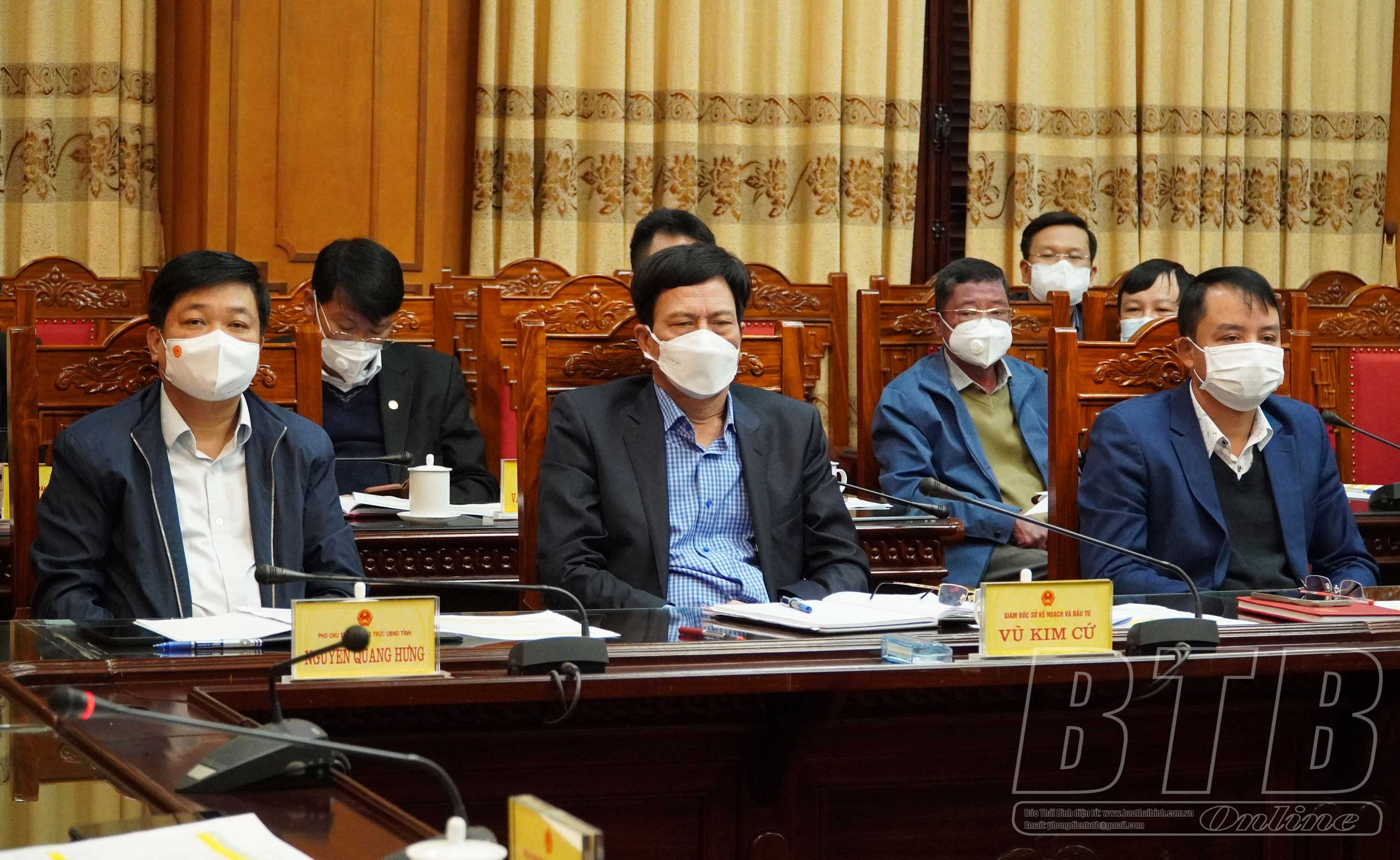 Tại cuộc họp, nhà đầu tư hạ tầng khu công nghiệp Liên Hà Thái (huyện Thái Thụy) báo cáo tiến độ thực hiện thủ tục đầu tư dự án của các nhà đầu tư thứ cấp trong khu công nghiệp; lãnh đạo huyện Quỳnh Phụ báo cáo tiến độ dự án nhà đầu tư vào nông nghiệp trên địa bàn; các sở đề xuất động thổ, khởi công một số công trình từ nguồn vốn đầu tư công. Các đại biểu đã thảo luận đánh giá thực trạng triển khai các dự án trên thực địa, những thuận lợi, khó khăn trong thực hiện các bước thủ tục đầu tư và tham mưu giải pháp tháo gỡ khó khăn giúp các nhà đầu tư đẩy nhanh tiến độ có thể động thổ, khởi công công trình, dự án vào đầu xuân mới.