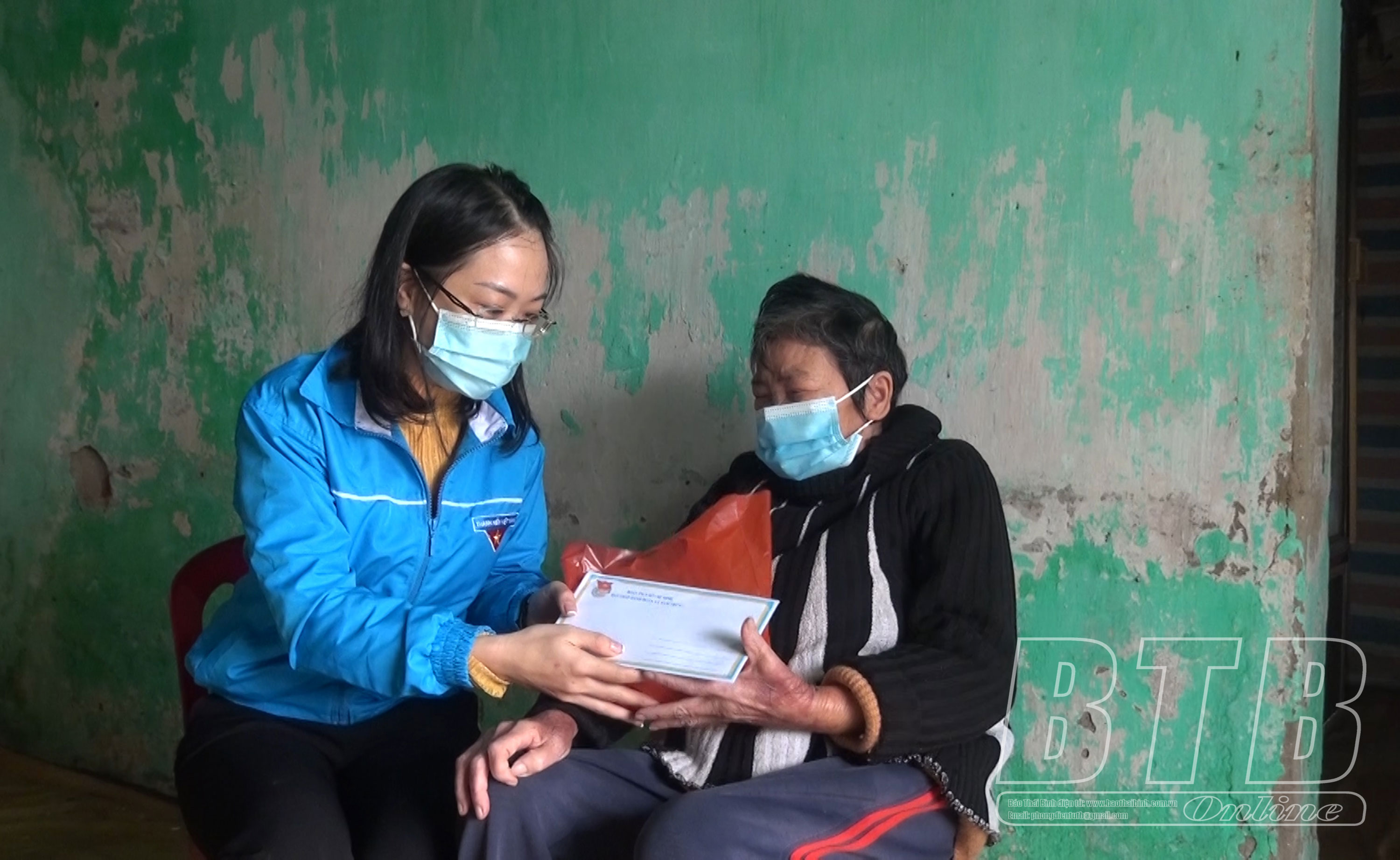 Đoàn viên Trung tâm Y tế huyện Tiền Hải khám bệnh, cấp thuốc miễn phí cho người cao tuổi xã Nam Trung.