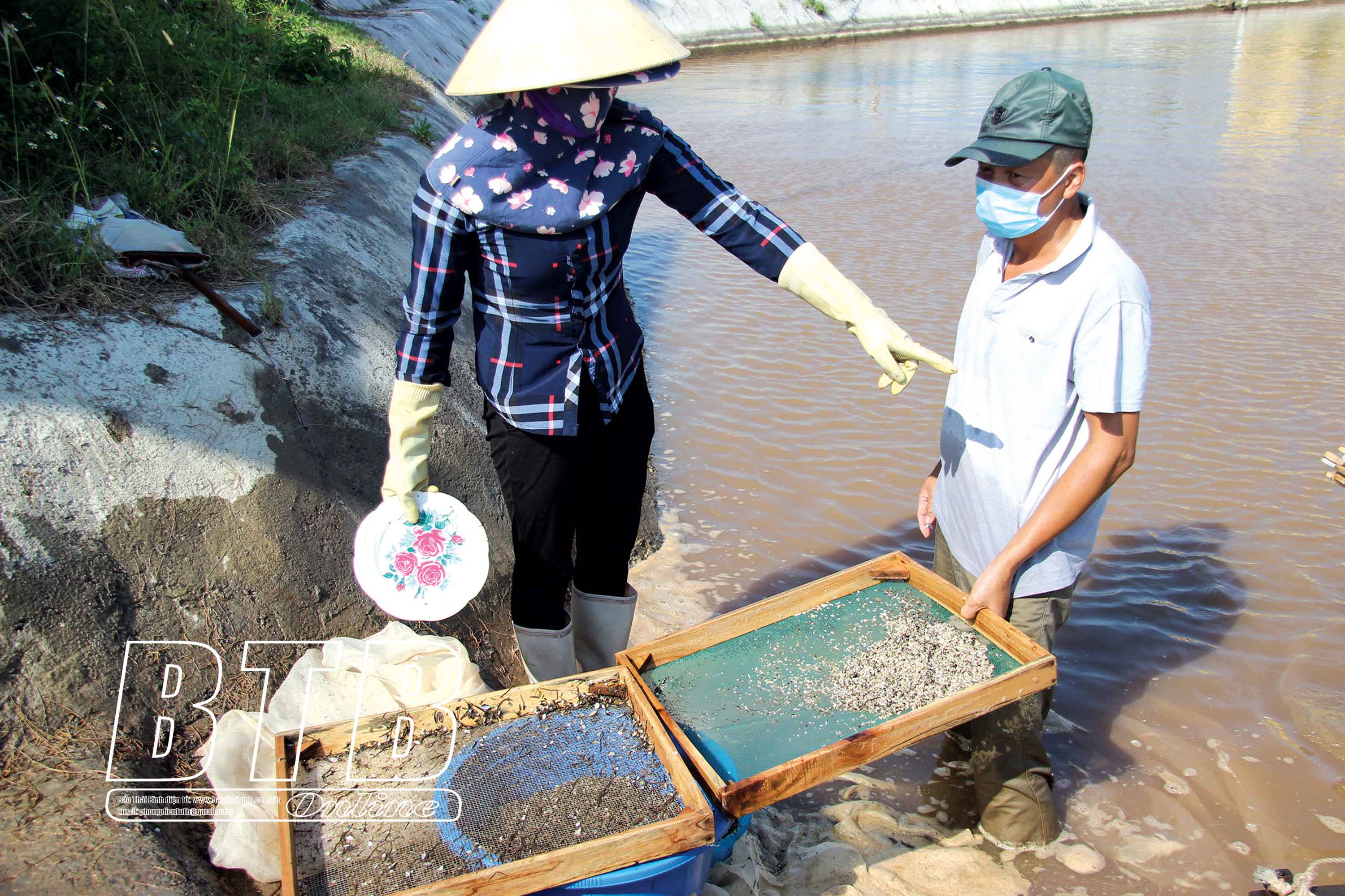 Nông dân xã Nam Cường (Tiền Hải) cải tạo ao đầm nuôi ngao giống.