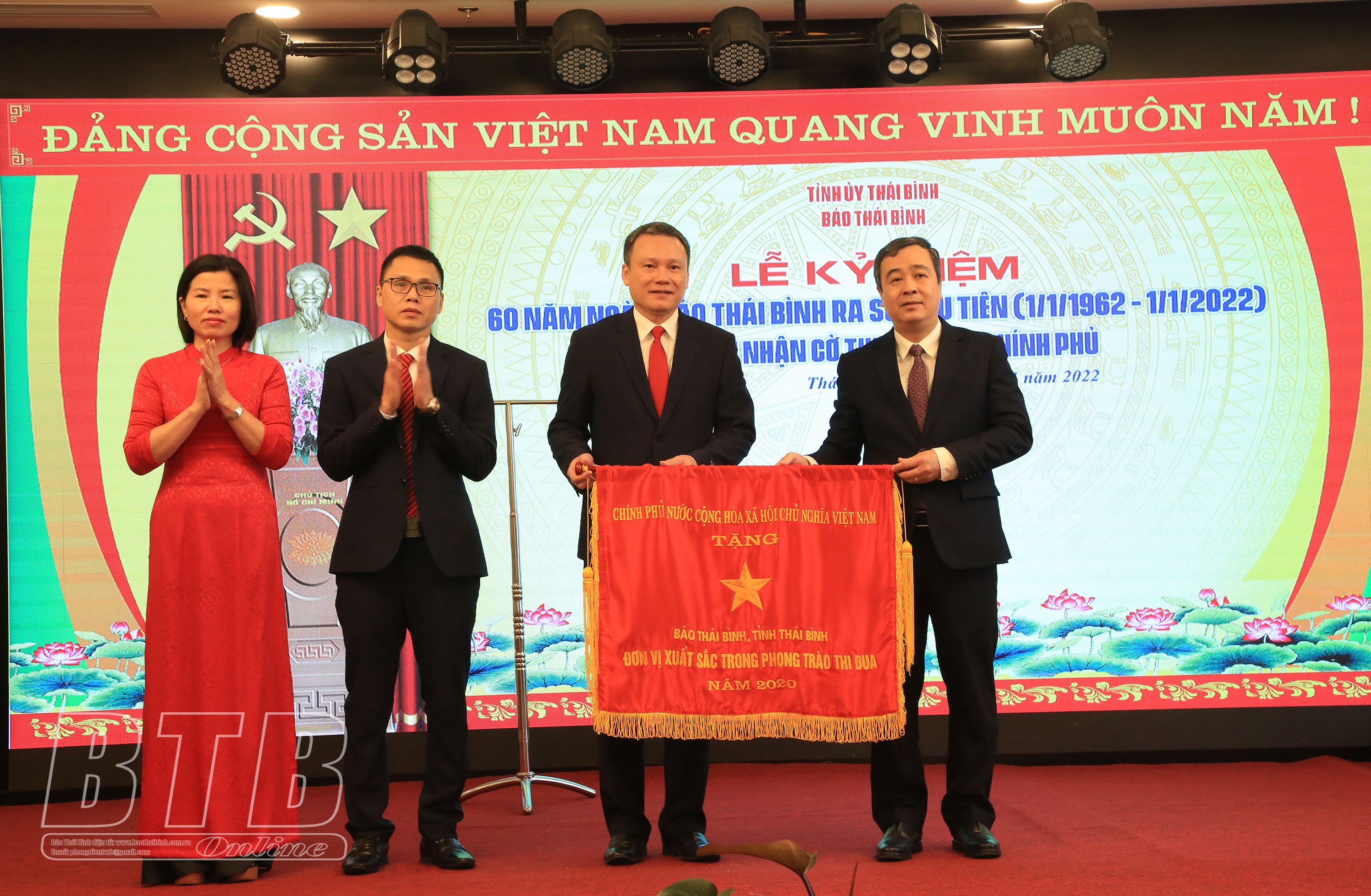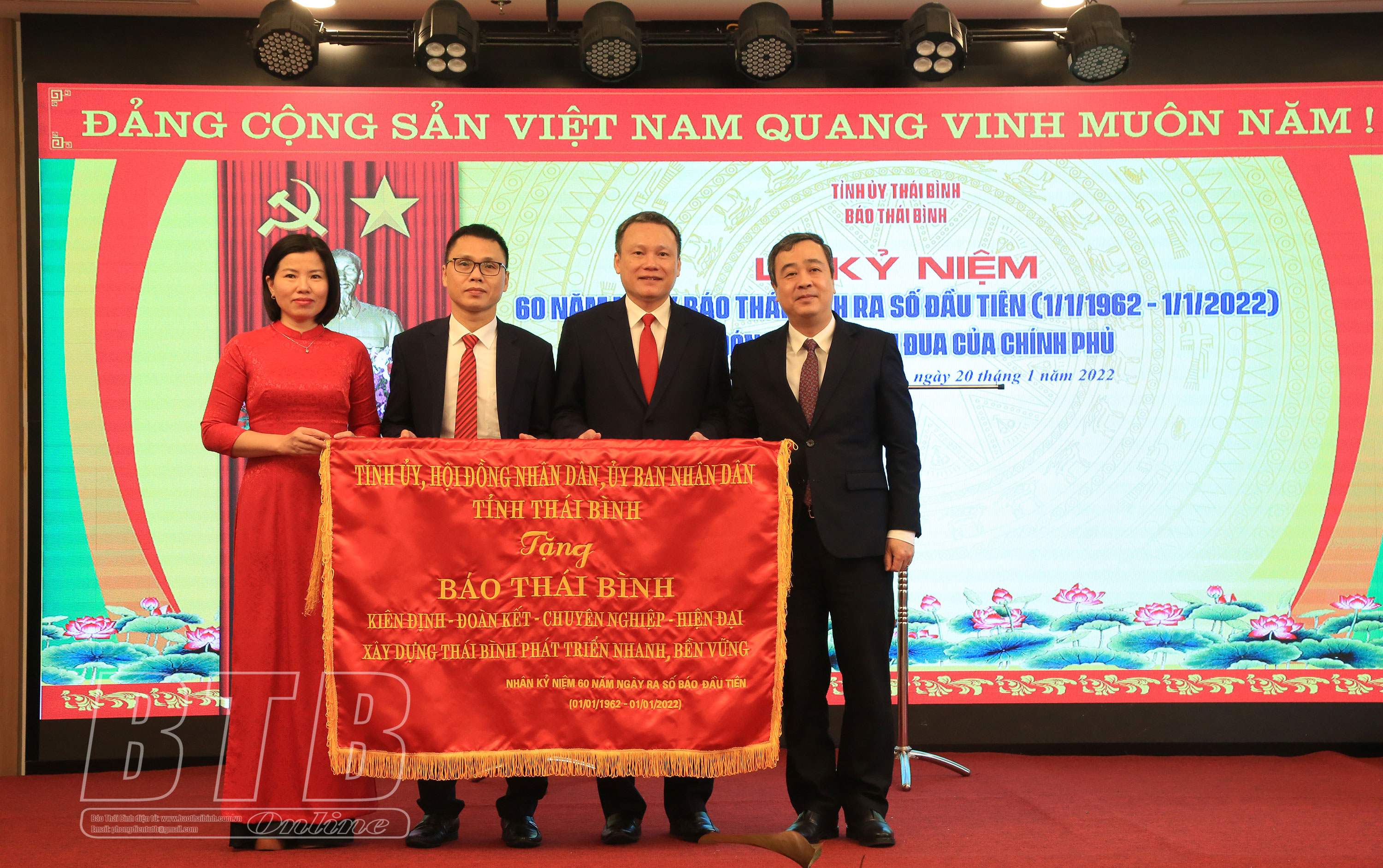 Tại lễ kỷ niệm, đồng chí Ngô Đông Hải, Bí thư Tỉnh ủy đã trao Cờ thi đua của Chính phủ và trao tặng bức trướng của Tỉnh ủy, HĐND, UBND tỉnh với dòng chữ “Báo Thái Bình: Kiên định - Đoàn kết - Chuyên nghiệp - Hiện đại - Xây dựng Thái Bình phát triển nhanh, bền vững” cho tập thể cán bộ Báo Thái Bình.
