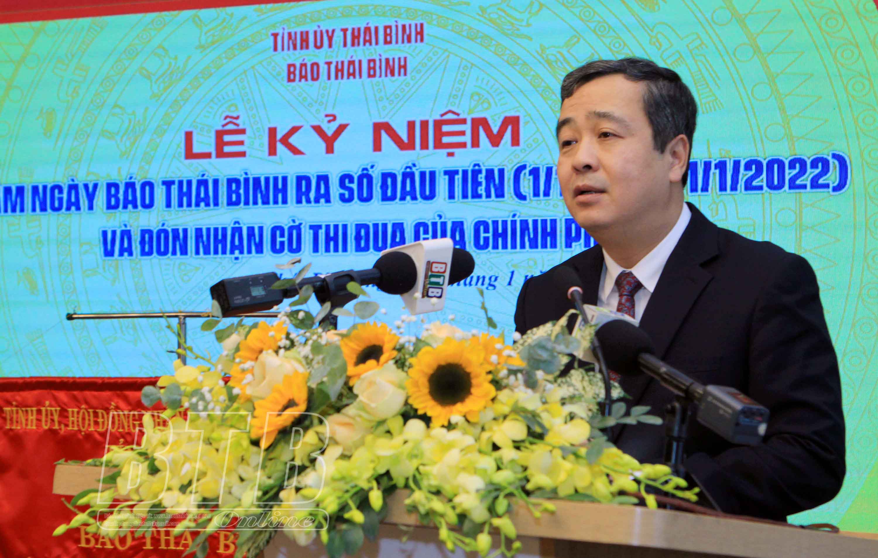 Đồng chí Bí thư Tỉnh ủy bày tỏ tin tưởng và mong muốn từ dấu mốc lịch sử 60 năm xây dựng, phát triển, cán bộ, phóng viên, biên tập viên, công nhân viên Báo Thái Bình tiếp tục phát huy truyền thống, luôn tự hào, yêu nghề, gắn bó, tâm huyết với nghề, phải xác định được trách nhiệm của mình trong sự phát triển của Báo Thái Bình. Đem tâm huyết, trách nhiệm vào mỗi bài viết, để mỗi trang báo vừa phải truyền tải đầy đủ chủ trương, đường lối của Đảng, Nhà nước, của tỉnh đến nhân dân, vừa phải phản ánh sâu sắc hơn, sinh động hơn thực tế cuộc sống đang diễn ra. Báo Thái Bình sẽ tích cực tham gia vào sân chơi đổi mới mà Báo Nhân dân đang khởi xướng để không ngừng phát triển, đáp ứng với yêu cầu phát triển của quê hương Thái Bình.
