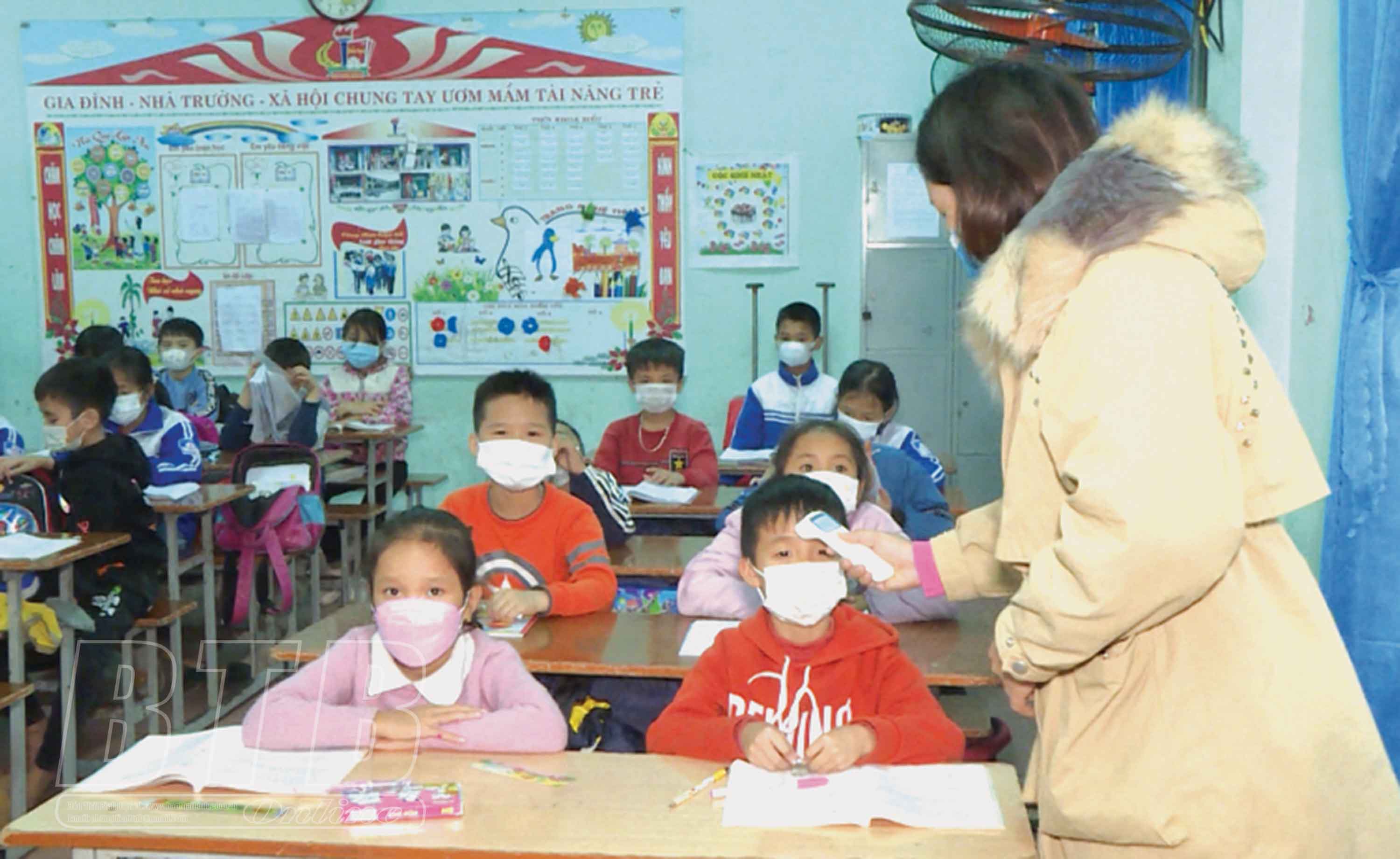 Thầy giáo Đinh Văn Chiểu, giáo viên nhà trường chia sẻ: Là giáo viên trực tiếp tiếp xúc với các em hàng ngày nên chúng tôi luôn động viên, nhắc nhở các em sát khuẩn, đeo khẩu trang khi đến trường. Tại các lớp học, chúng tôi sẽ đo thân nhiệt cho các em ngay lúc đầu giờ đến lớp. Bên cạnh đó, nhà trường thường xuyên kết nối với Trung tâm Y tế huyện thực hiện phun khử khuẩn ở tất cả các khu vực trong trường học. Trên các nhóm zalo từng lớp, chúng tôi tương tác với phụ huynh để bảo đảm học sinh về nhà và đến trường đều an toàn. Tại huyện Kiến Xương, để thực hiện tốt công tác phòng, chống dịch tại các cơ sở giáo dục, ngành giáo dục huyện đã tăng cường công tác tuyên truyền, vận động gia đình học sinh có người đi từ vùng dịch hoặc ra ngoài tỉnh trở về kịp thời khai báo y tế, thông báo với địa phương và nhà trường trong dịp trước, trong và sau tết Nguyên đán Nhâm Dần 2022. Bên cạnh đó, các nhà trường cũng tăng cường sự giám sát của giáo viên đối với học sinh và giữa học sinh với nhau về cả việc chấp hành quy định phòng, chống dịch và những diễn biến bất thường trong sức khỏe.