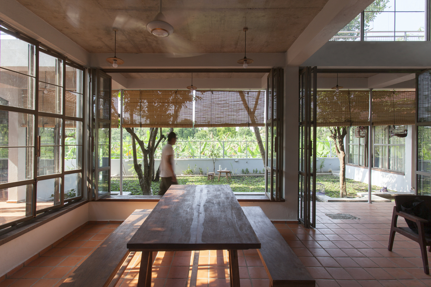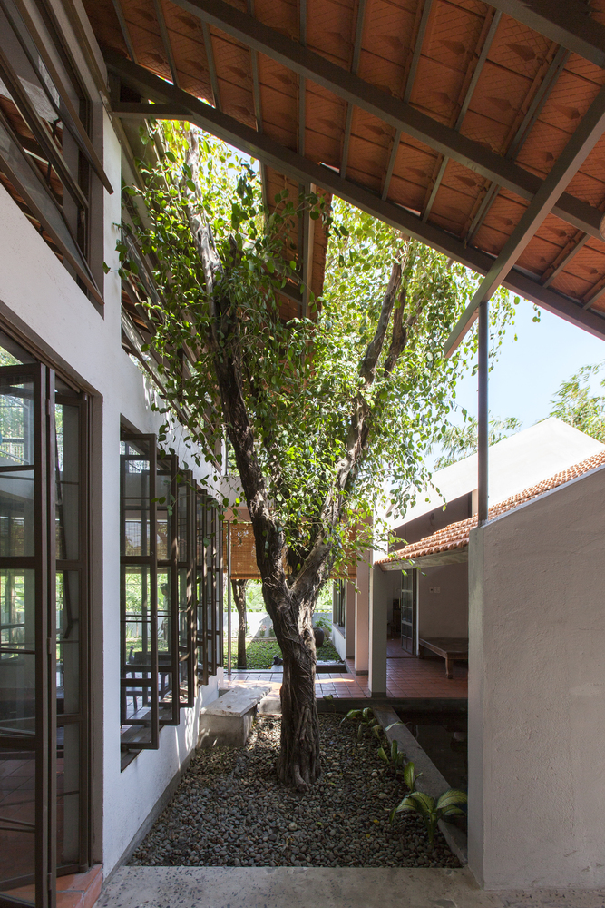 Xen lẫn giữa các không gian là những khoảng sân trong, nơi được định hình bởi các gốc cây sanh và cây si hiện hữu.