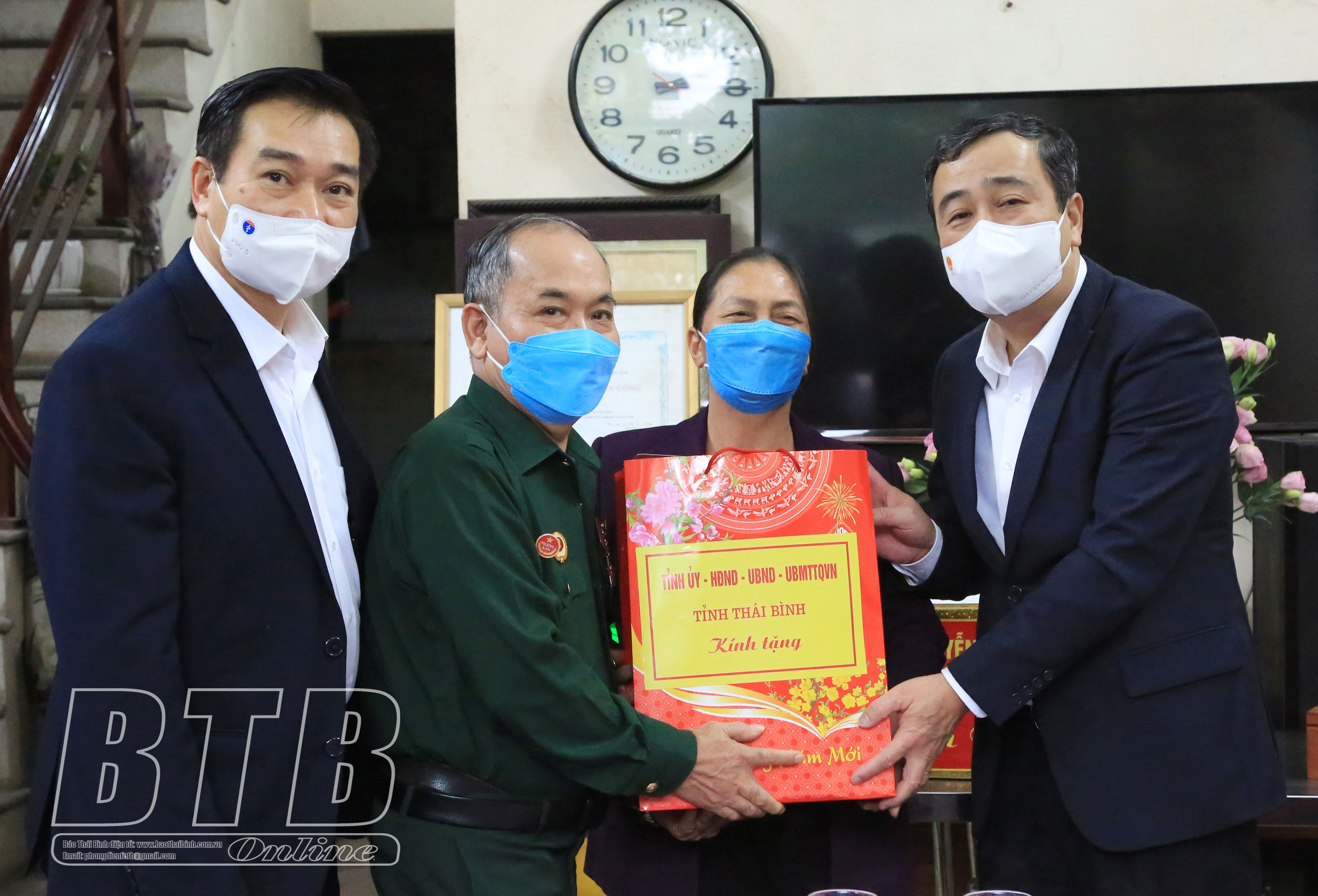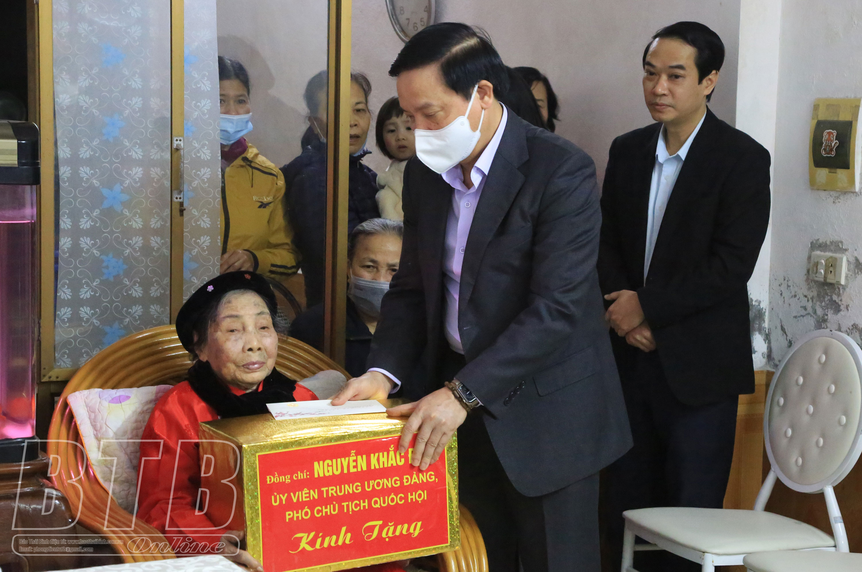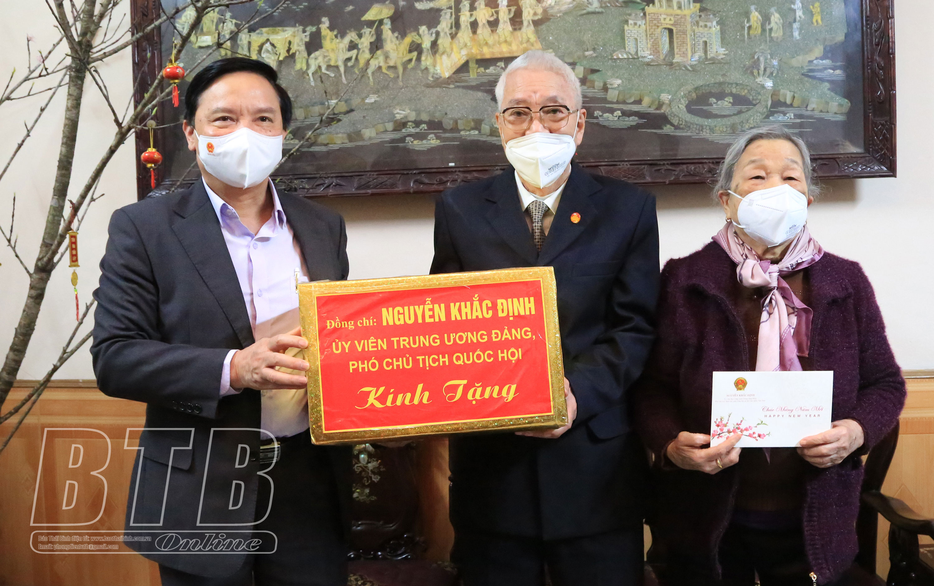 Nhân dịp tết Nguyên đán Nhâm Dần 2022, chiều ngày 21/1, các đồng chí: Nguyễn Khắc Định, Ủy viên Ban Chấp hành Trung ương Đảng, Phó Chủ tịch Quốc hội; Ngô Đông Hải, Ủy viên Ban Chấp hành Trung ương Đảng, Bí thư Tỉnh ủy; Lê Văn Thanh, Thứ trưởng Bộ Lao động - Thương binh và Xã hội; Nguyễn Thị Thúy Ngần, Phó Chủ nhiệm Văn phòng Quốc hội thăm, tặng quà gia đình chính sách và người cao tuổi tiêu biểu trên địa bàn thành phố Thái Bình. Cùng đi có các đồng chí Ủy viên Ban Thường vụ Tỉnh ủy, lãnh đạo Sở Lao động - Thương binh và Xã hội.