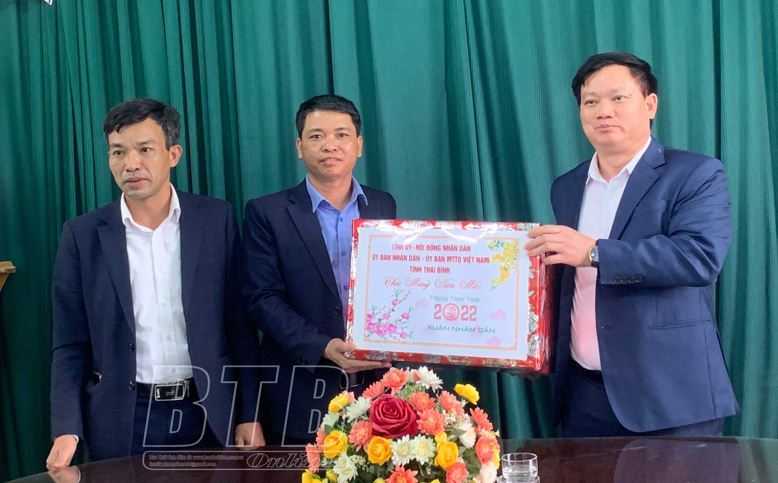 Đồng chí Nguyễn Khắc Thận, Phó Bí thư Tỉnh ủy, Chủ tịch UBND tỉnh tặng quà chúc tết cho Đảng bộ, chính quyền xã Vũ Vinh.