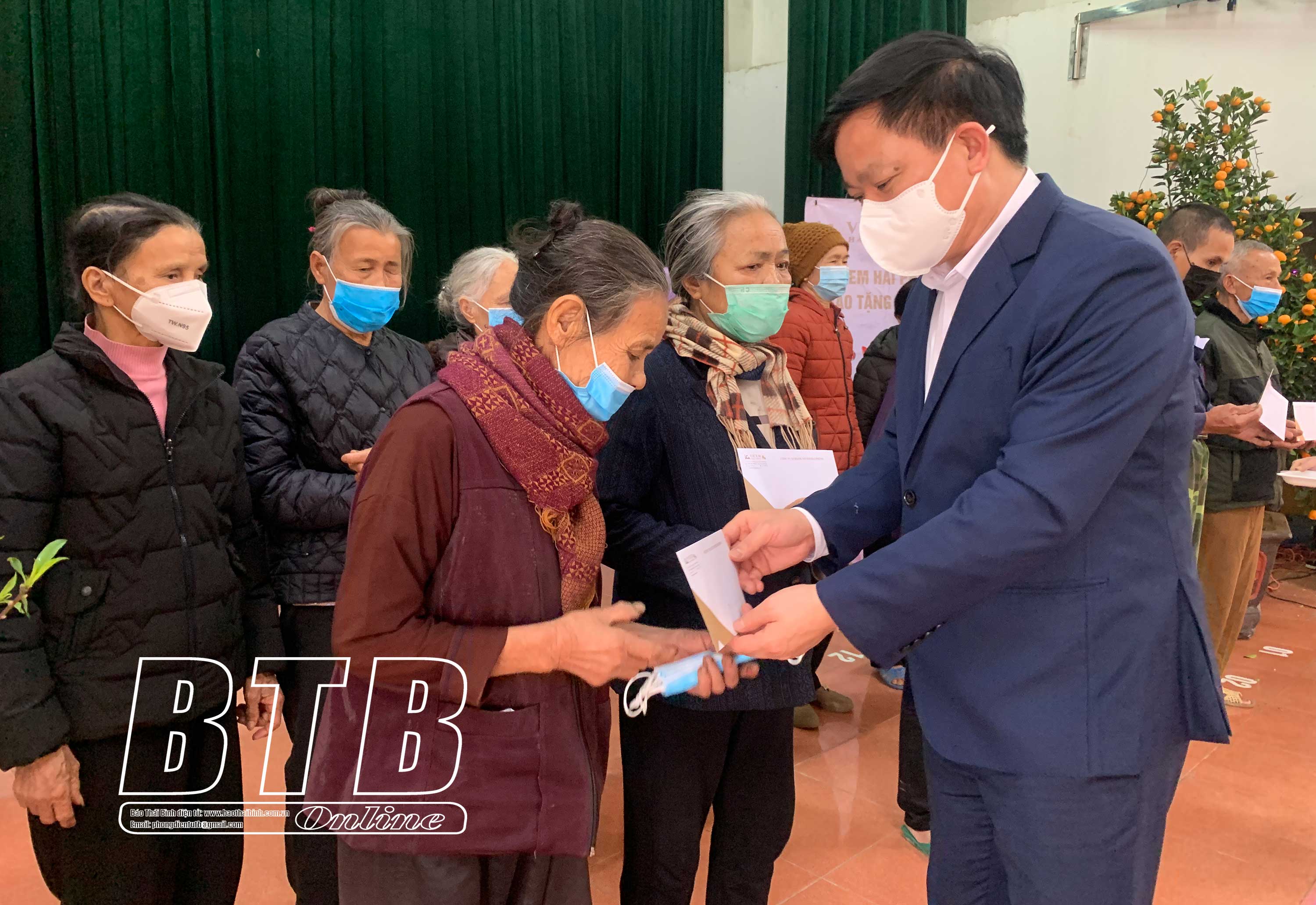 Nhân dịp này, đồng chí  Phó Bí thư Tỉnh ủy, Chủ tịch UBND tỉnh và lãnh đạo Công ty Xi măng Vicem Hải Phòng đã trao 100 suất quà tết cho các hộ gia đình chính sách, hộ nghèo, cận nghèo của xã Vũ Vinh, mỗi suất quà trị giá 500 nghìn đồng. Qua đó động viên các gia đình chính sách, hộ nghèo tích cực phát triển kinh tế, nỗ lực vươn lên để xây dựng quê hương giàu đẹp, văn minh.