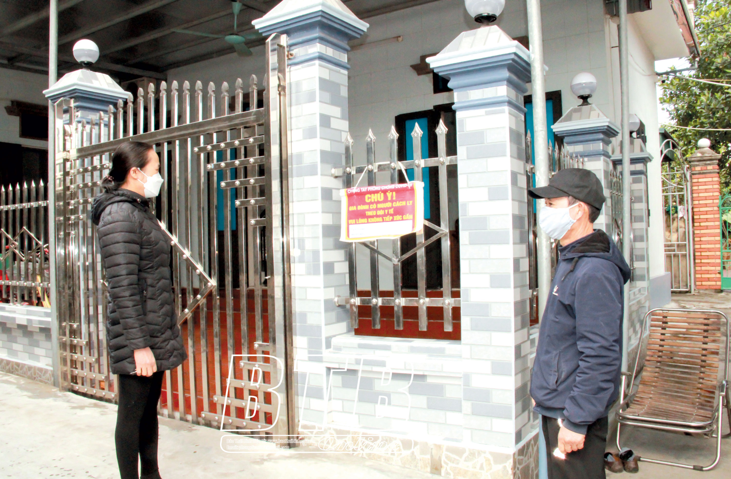 Các thành viên tổ Covid-19 cộng đồng thôn Anh Dũng, xã Đông La (Đông Hưng) thường xuyên kiểm tra, giám sát việc thực hiện cách ly y tế của trường hợp F1.