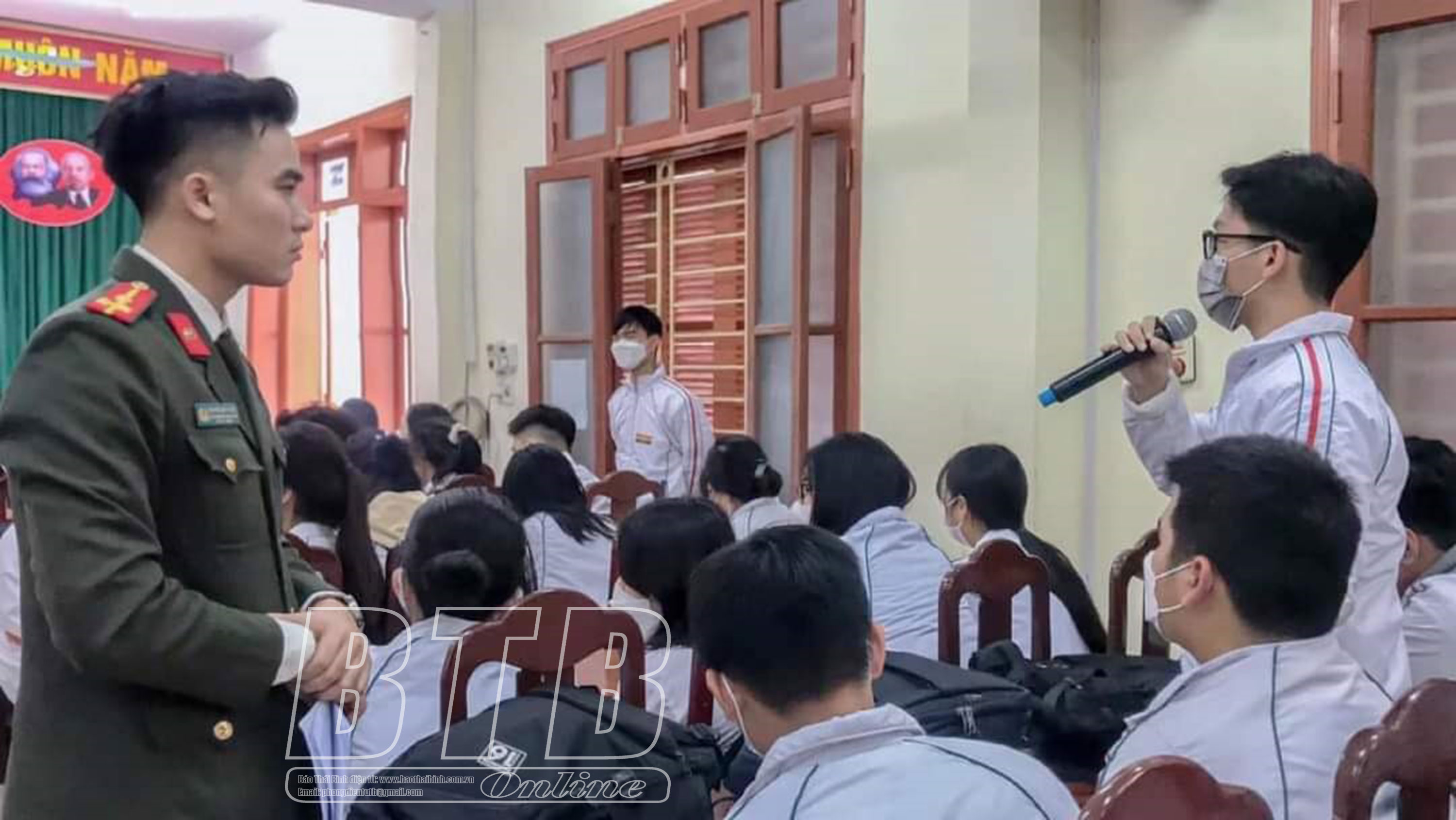 Đoàn Thanh niên Công an tỉnh phối hợp với Trường THPT Lê Quý Đôn tuyên truyền pháp luật cho học sinh.