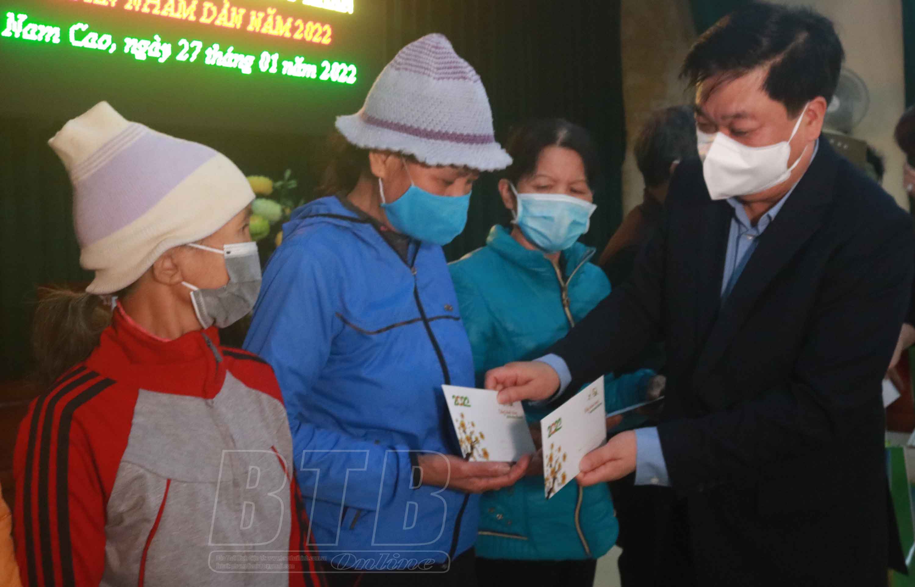 Đồng chí Nguyễn Quang Hưng, Ủy viên Ban Thường vụ Tỉnh ủy, Phó Chủ tịch thường trực UBND tỉnh trao quà tết hộ nghèo, hộ cận nghèo xã Nam Cao, huyện Kiến Xương.
