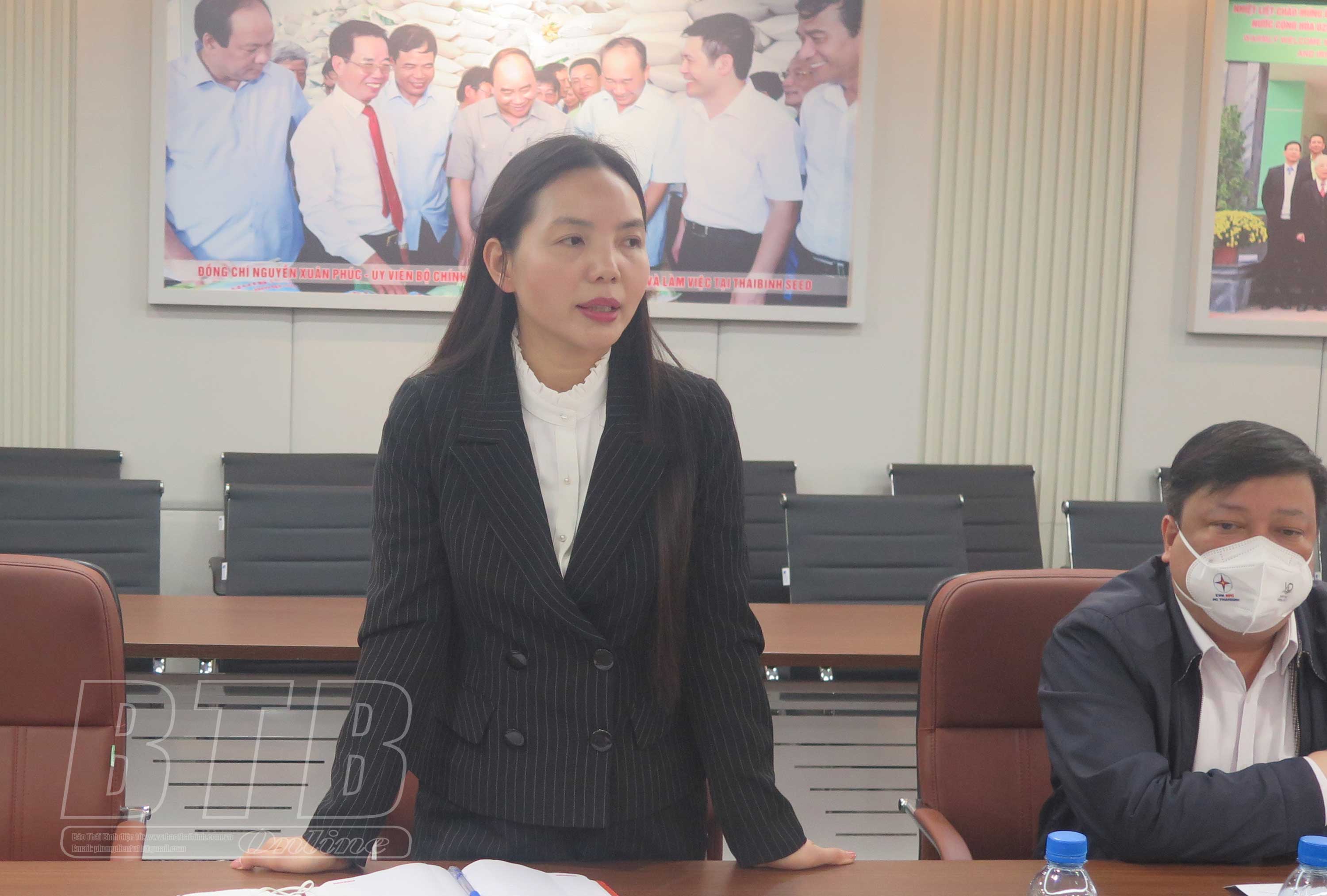 Đồng chí Ngô Thị Kim Hoàn, Ủy viên Ban Thường vụ, Chủ nhiệm Ủy ban Kiểm tra Tỉnh ủy phát biểu tại Công ty Cổ phần Tập đoàn ThaiBinh Seed.