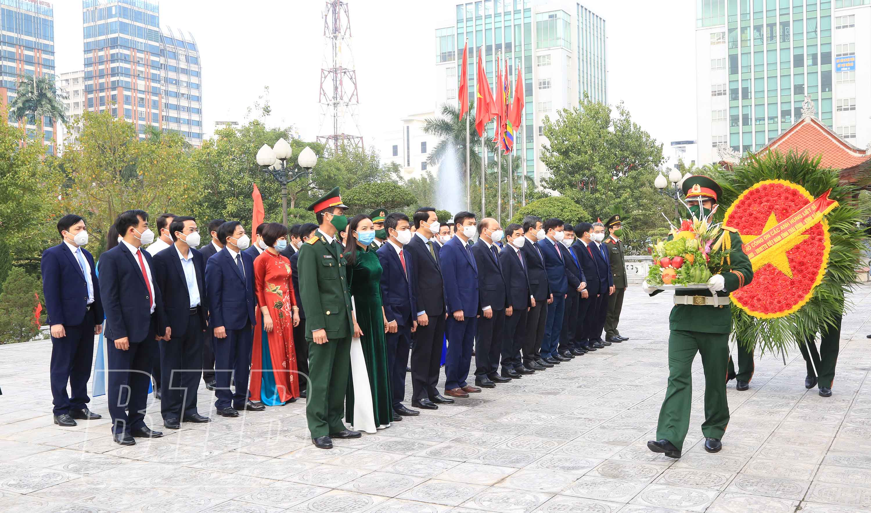 Các đồng chí lãnh đạo tỉnh, thành phố dâng hương tưởng niệm đồng chí Nguyễn Đức Cảnh tại Tượng đài đồng chí Nguyễn Đức Cảnh (Quảng trường 14/10).