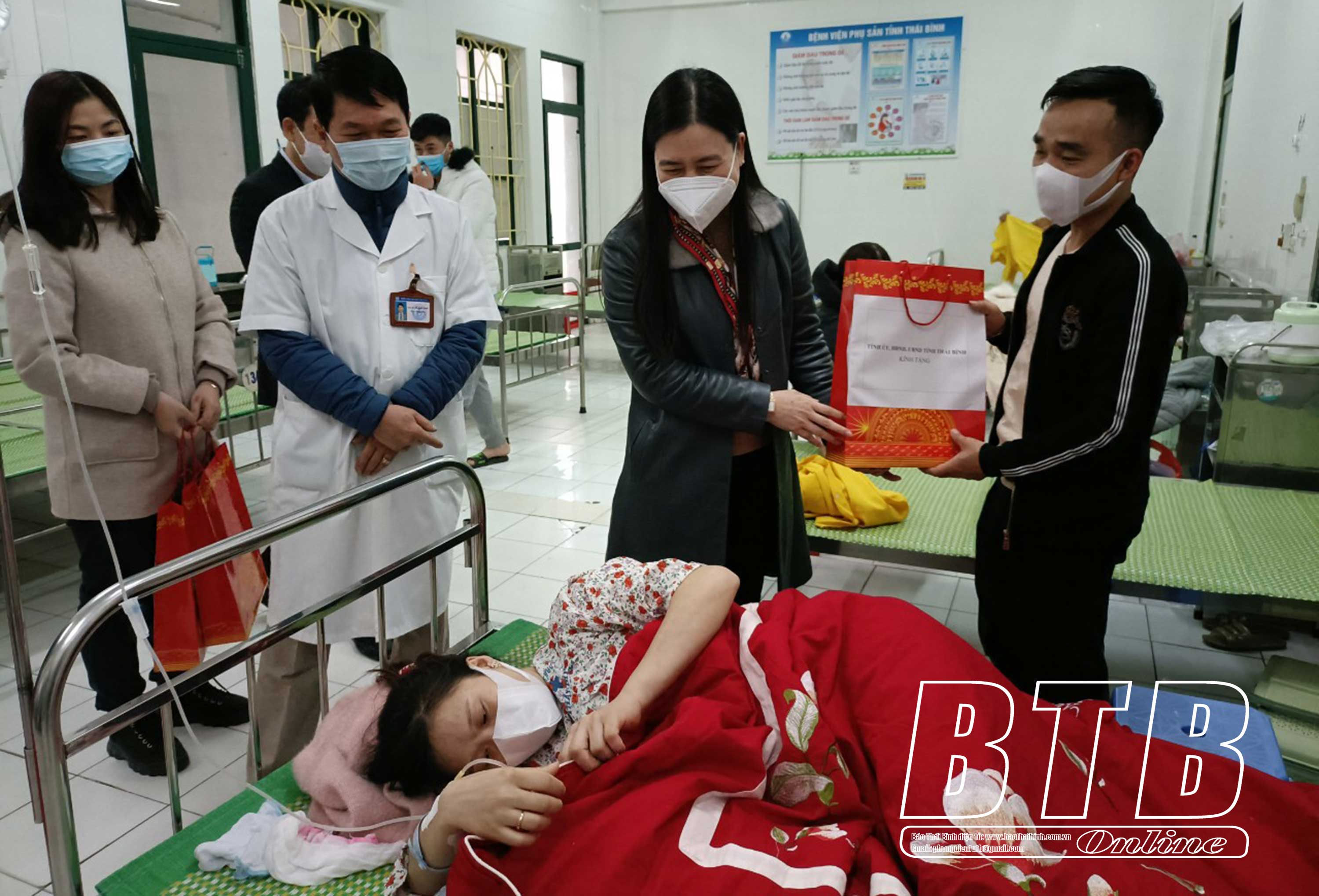 Đồng chí Trần Thị Bích Hằng, Tỉnh ủy viên, Phó Chủ tịch UBND tỉnh, Phó Trưởng ban Chỉ đạo phòng, chống dịch Covid-19 tỉnh tặng quà chúc tết sản phụ và người nhà tại Bệnh viện Phụ sản Thái Bình.