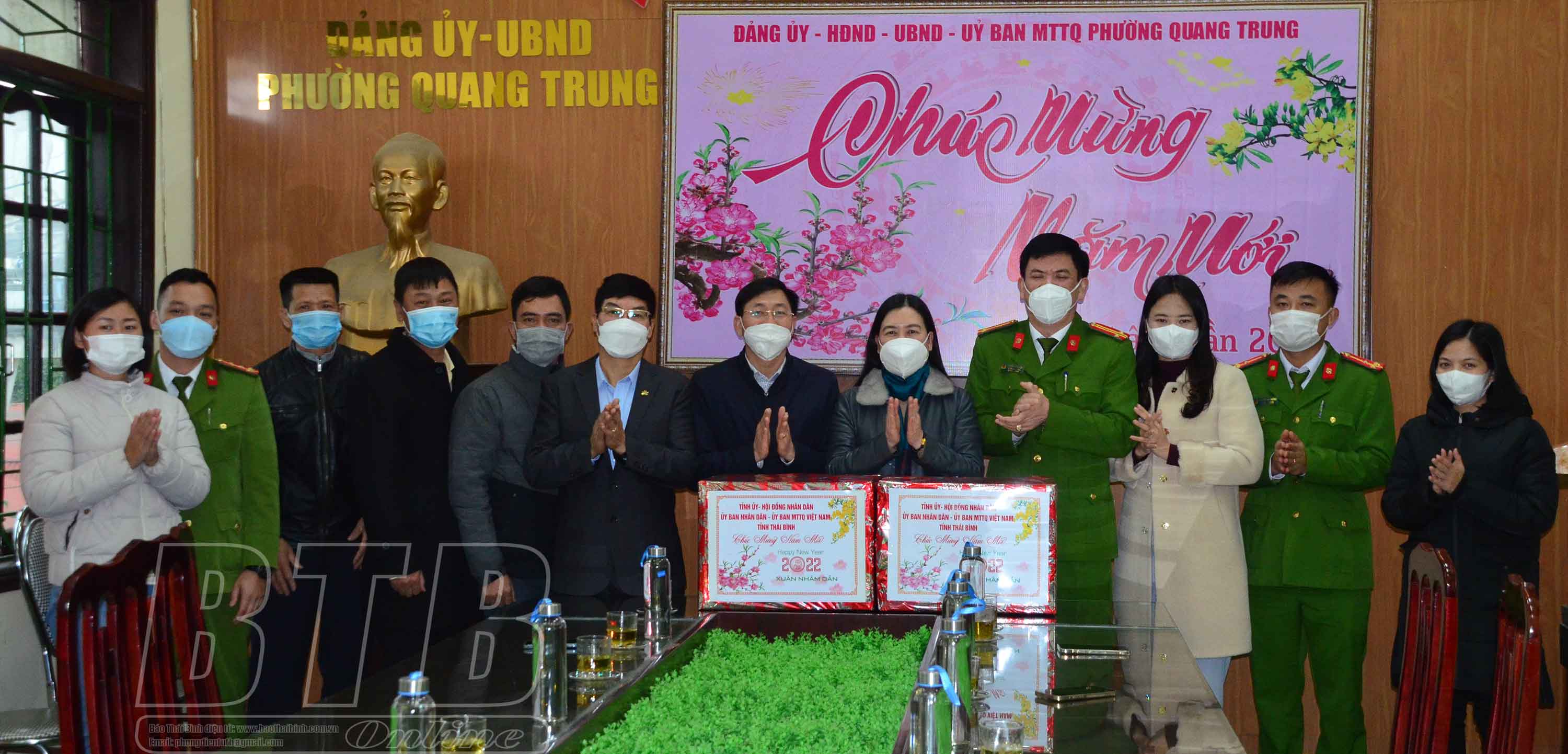 Nhân dịp năm mới Nhâm Dần 2022, đồng chí gửi lời chúc đến toàn thể cán bộ, công chức, viên chức, lực lượng an ninh, nhân viên y tế của hai phường Quang Trung, phường Lê Hồng Phong nói riêng, thành phố Thái Bình nói chung năm mới an khang, thịnh vượng, hoàn thành xuất sắc nhiệm vụ được giao.