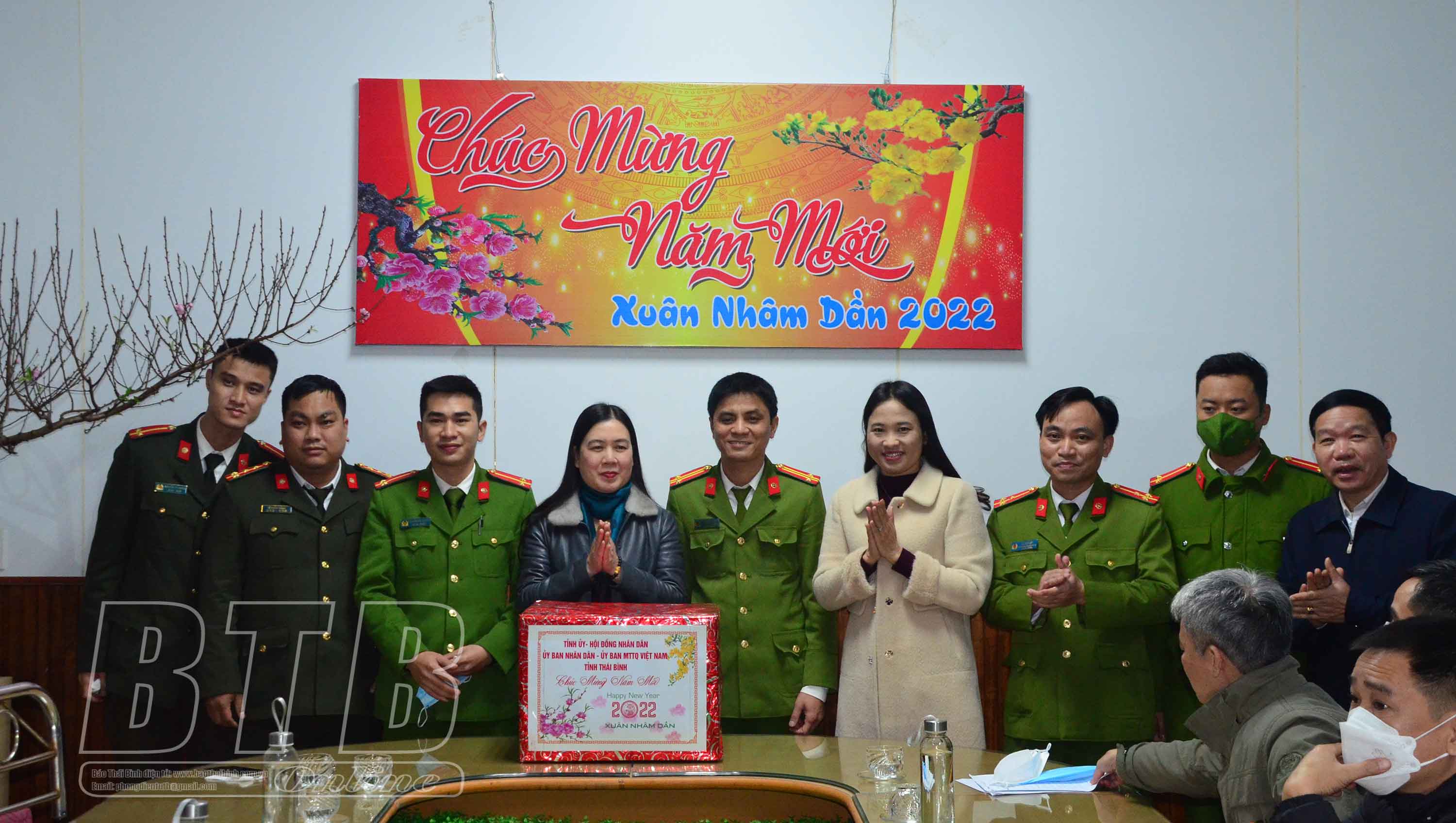 Đồng chí Trần Thị Bích Hằng, Tỉnh ủy viên, Phó Chủ tịch UBND tỉnh, Phó Trưởng ban thường trực Ban Chỉ đạo phòng, chống dịch Covid-19 tỉnh chúc tết lực lượng công an làm nhiệm vụ trực tết tại khu vực phường Lê Hồng Phong (thành phố Thái Bình).