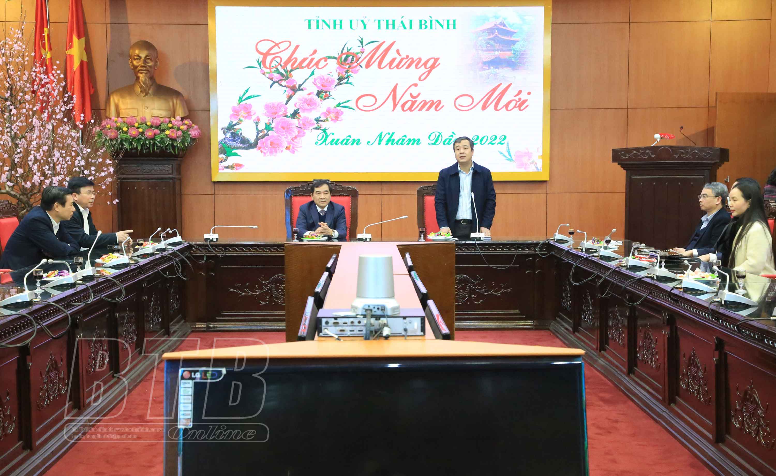 Nhân dịp bước sang năm mới, xuân Nhâm Dần 2022, thay mặt Tỉnh ủy, HĐND, UBND tỉnh, đồng chí Bí thư Tỉnh ủy gửi lời chúc mừng tốt đẹp nhất đến đảng bộ, chính quyền và nhân dân các địa phương; mong muốn các địa phương tiếp tục phát huy thành tích đã đạt được, khắc phục khó khăn, vươn lên đạt được nhiều thành tựu trên mọi lĩnh vực, cùng Đảng bộ, chính quyền và nhân dân toàn tỉnh hoàn thành thắng lợi các mục tiêu Nghị quyết Đại hội XIII của Đảng, Nghị quyết Đại hội Đảng bộ tỉnh lần thứ XX đã đề ra, góp phần xây dựng quê hương Thái Bình ngày càng giàu đẹp, văn minh.