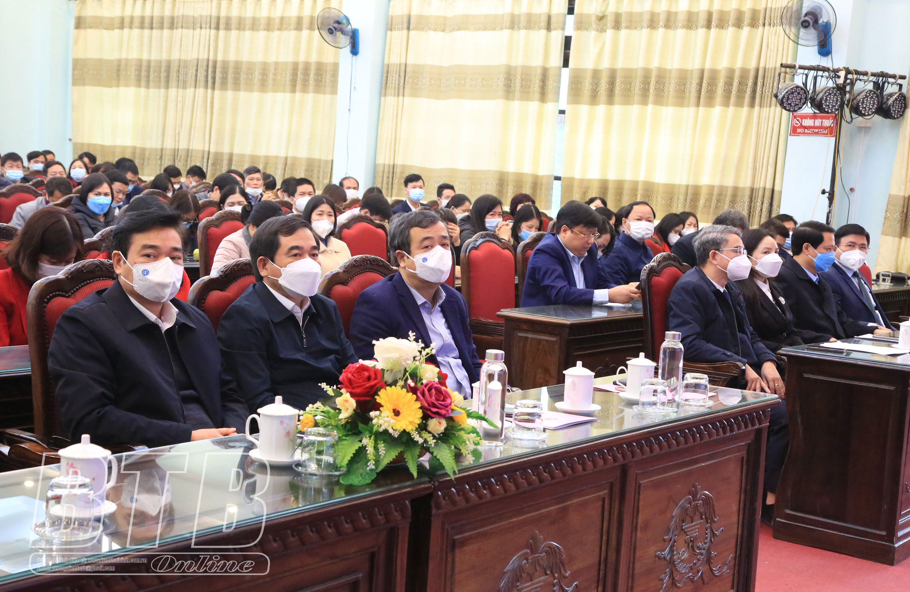 Sau chương trình văn nghệ với các tiết mục mừng Đảng, mừng xuân, ca ngợi quê hương đất nước, các đại biểu đã nghe lãnh đạo Văn phòng Tỉnh ủy báo cáo nhanh tình hình thực hiện nhiệm vụ chính trị trước, trong và sau tết Nguyên đán Nhâm Dần 2022 trên địa bàn toàn tỉnh. Theo đó,  việc tổ chức đón tết Nguyên đán Nhâm Dần trên địa bàn tỉnh đã diễn ra vui tươi, lành mạnh, an toàn, tiết kiệm. Tỉnh ủy, UBND tỉnh đã lãnh đạo, chỉ đạo các cấp, các ngành, địa phương, đơn vị và nhân dân trong tỉnh nêu cao tinh thần trách nhiệm, đề cao cảnh giác, không chủ quan lơ là; thực hiện nghiêm túc phương châm thích ứng an toàn, linh hoạt, kiểm soát hiệu quả dịch Covid-19; tăng cường công tác thông tin, tuyên truyền và quản lý chặt chẽ di, biến động dân cư, nhất là nhóm công dân đi làm ăn xa trở về địa phương; chỉ đạo tổ chức tiêm vắc-xin phòng Covid-19 thần tốc, xuyên tết. Đến nay, tình hình dịch Covid-19 trên địa bàn tỉnh tiếp tục được kiểm soát. Tình hình thị trư­ờng tương đối ổn định, không xảy ra hiện tượng tăng giá đột biến; hàng hóa đa dạng, phong phú về chủng loại, mẫu mã đáp ứng đủ nhu cầu cho người tiêu dùng trong dịp tết. Công tác bảo đảm an sinh xã hội, chăm lo tết cho nhân dân được các cấp, các ngành quan tâm chỉ đạo thực hiện theo chủ trương mọi người, mọi nhà đều được vui tết, đón xuân. Tổng số tiền chăm lo tết Nguyên đán Nhâm Dần 2022 cho các đối tượng trên địa bàn tỉnh khoảng 188 tỷ đồng, tăng 40,2 tỷ đồng so với tết Nguyên đán Tân Sửu năm 2021. Tình hình an ninh chính trị ổn định, trật tự an toàn xã hội được bảo đảm; không xảy ra khiếu kiện đông người; không xảy ra cháy nổ, ùn tắc giao thông; không xảy ra trọng án và các vụ việc phức tạp, nghiêm trọng; không xảy ra trường hợp đốt pháo không đúng quy định trên địa bàn tỉnh. Về sản xuất nông nghiệp, đến ngày 4/2/2022, toàn tỉnh đã lấy nước đổ ải đạt 100% tổng diện tích gieo cấy, dự kiến toàn tỉnh sẽ cấy tập trung từ ngày 10 đến ngày 20/2/2022. Tình hình chăn nuôi ổn định, không có dịch bệnh nguy hiểm xảy ra. Về công tác tuyển chọn, gọi công dân nhập ngũ, đến ngày 4/2/2022, các huyện, thành phố đã đã phát lệnh gọi nhập ngũ 2.897 thanh niên; số thanh niên có tư tưởng tốt, sẵn sàng nhập ngũ là 2.760/2.650 chỉ tiêu giao, đạt 104,15%.
