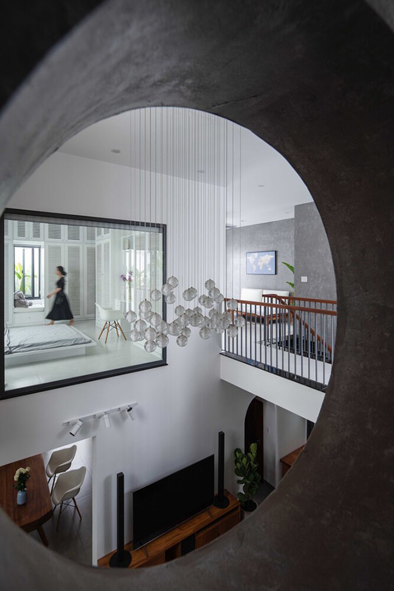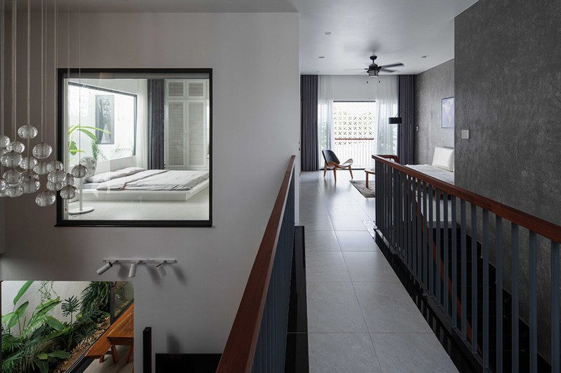 Tầng 2 là nơi bố trí phòng ngủ và phòng sinh hoạt chung của gia đình cùng với một lỗ thông gió lớn ở giữa mang đến sự kết nối giữa các không gian tốt hơn.