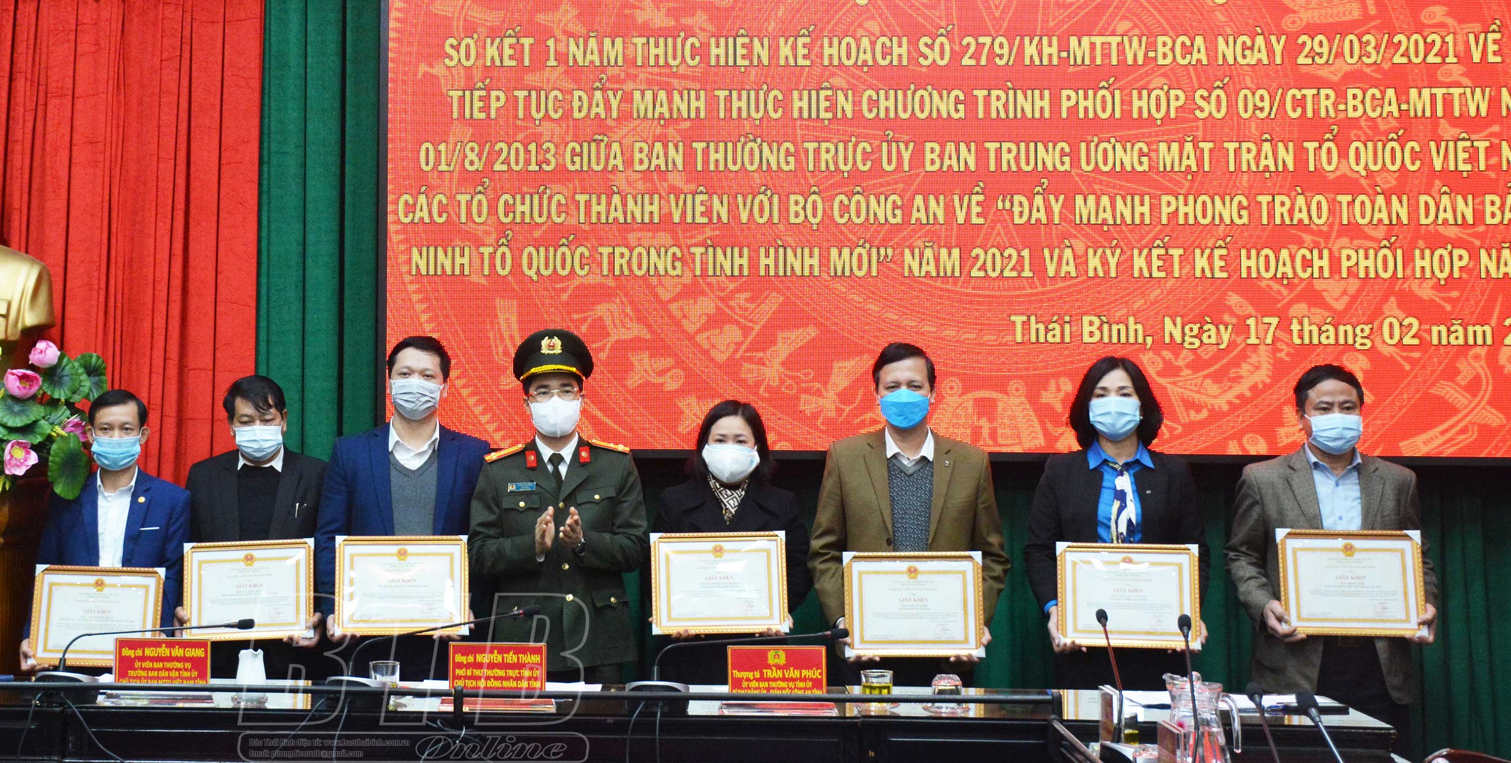 Các đồng chí: Nguyễn Tiến Thành, Phó Bí thư thường trực Tỉnh ủy, Chủ tịch HĐND tỉnh; Nguyễn Văn Giang, Ủy viên Ban Thường vụ, Trưởng ban Dân vận Tỉnh ủy, Chủ tịch Ủy ban MTTQ tỉnh; Thượng tá Trần Văn Phúc, Ủy viên Ban Thường vụ Tỉnh ủy, Giám đốc Công an tỉnh dự hội nghị.