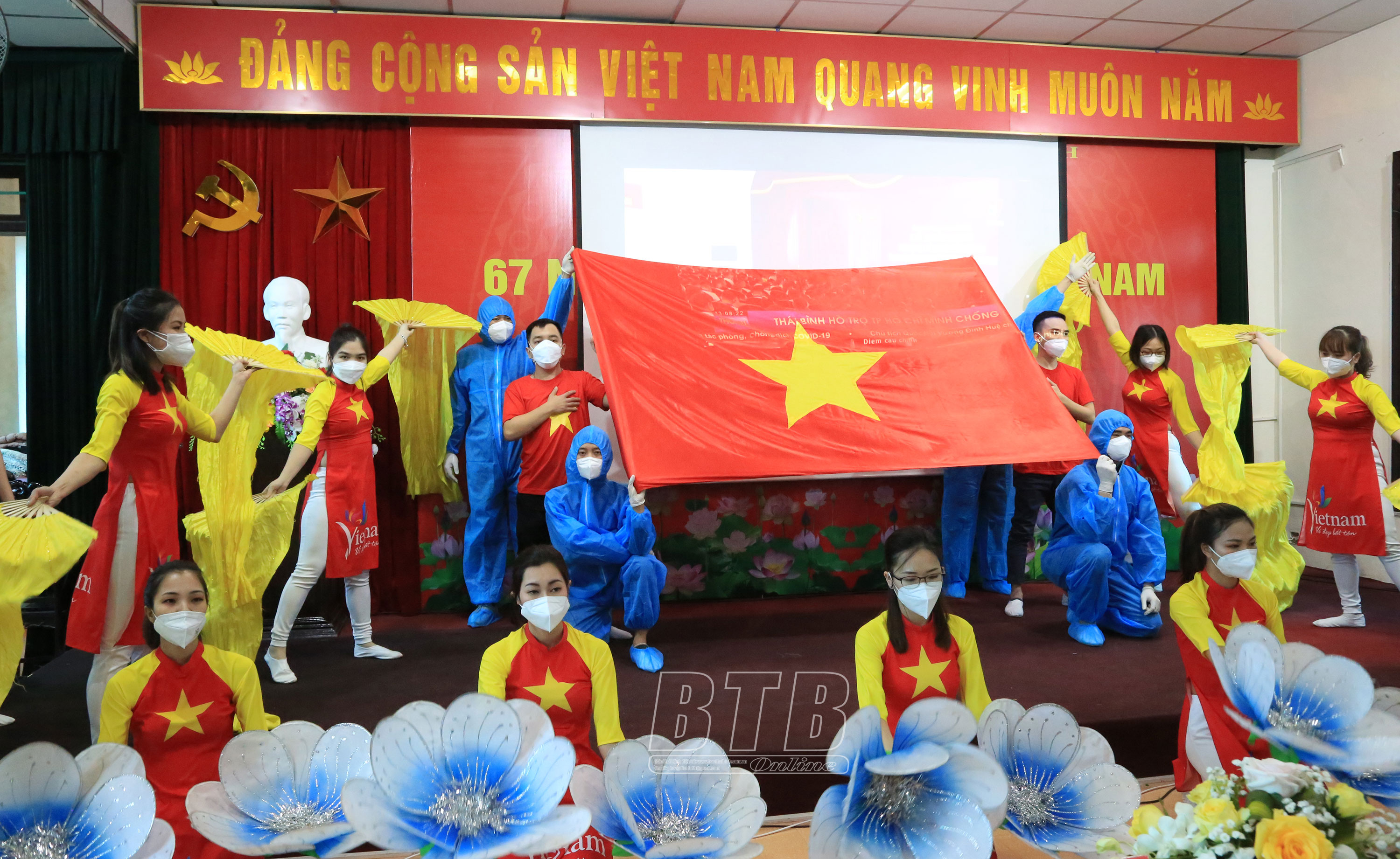 Cán bộ ngành Y tế Thái Bình biểu diễn văn nghệ chào mừng lễ kỷ niệm.