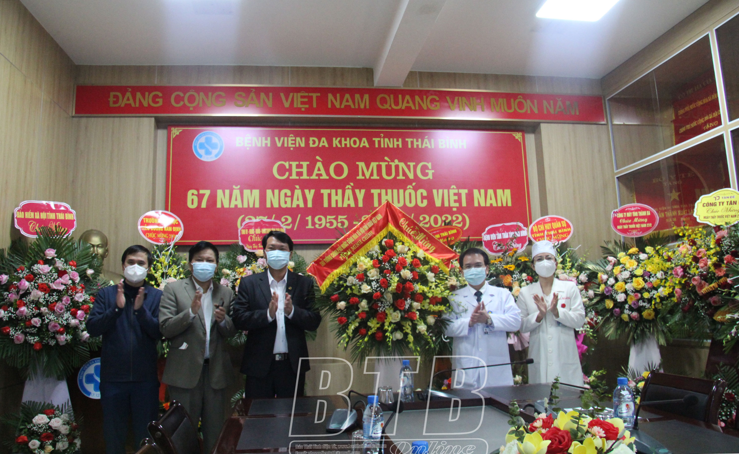 Bệnh viện Đa khoa tỉnh Thái Bình đón nhận lẵng hoa của Thủ tướng Chính phủ Phạm Minh Chính.