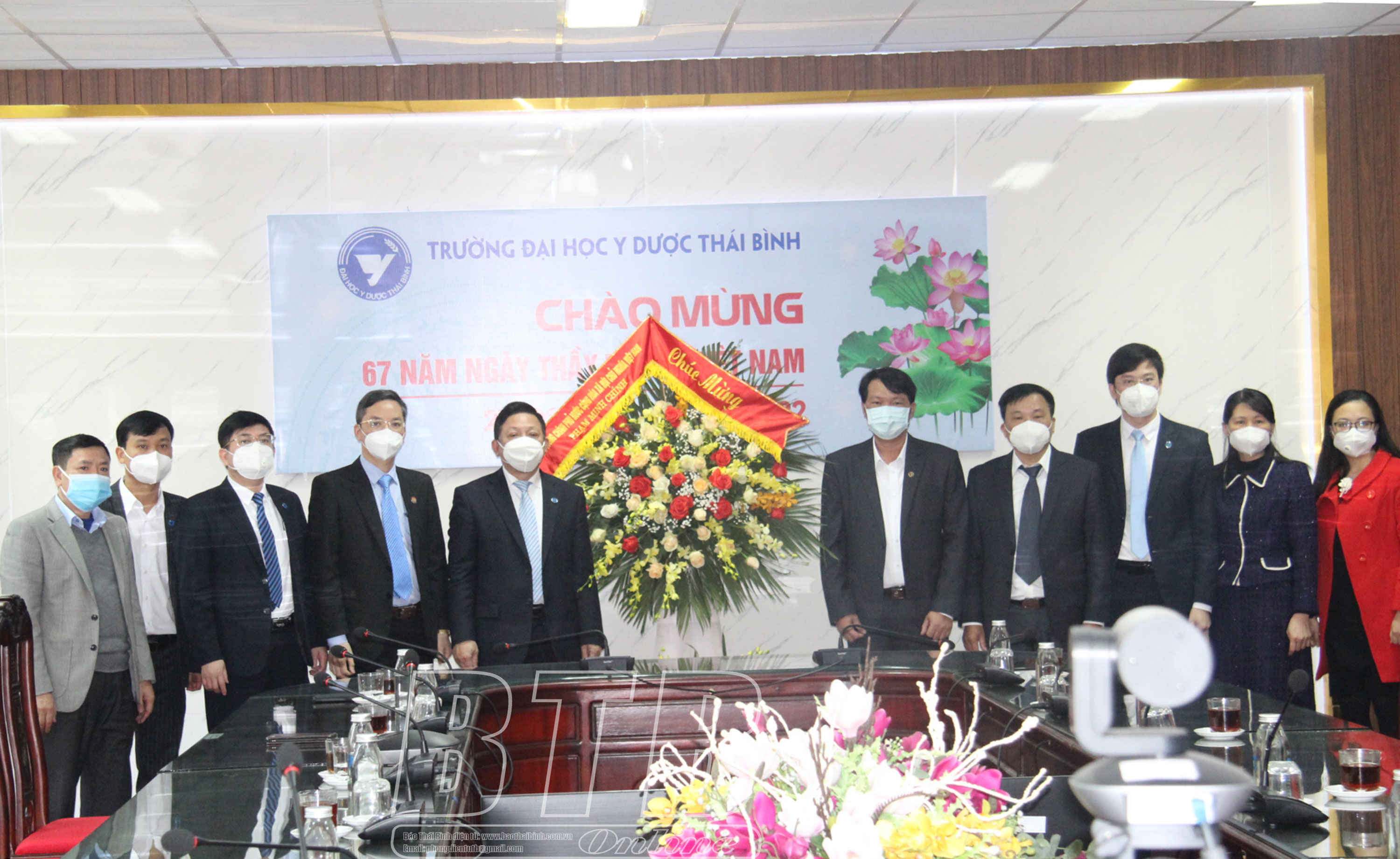 Trường Đại học Y Dược Thái Bình đón nhận lẵng hoa của Thủ tướng Chính phủ Phạm Minh Chính.