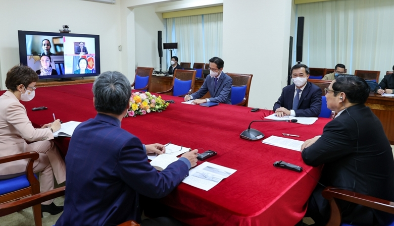 Tại cuộc điện đàm, Thủ tướng cho biết, sau cuộc gặp trực tiếp giữa Thủ tướng và bà Giám đốc tại Paris (Pháp) vào tháng 11/2021, đến nay Việt Nam đã đạt được những kết quả hết sức tích cực trong việc tăng độ bao phủ vaccine phòng COVID-19. Việt Nam đã thực hiện thành công chiến lược vaccine “đi sau về trước” và trở thành một trong những nước có tỉ lệ bao phủ tiêm vaccine cao nhất trên thế giới. Tổng số vaccine Việt Nam có được khoảng 213 triệu liều và đã tiêm trên 194 triệu liều; hiện 98% người dân từ 18 tuổi trở lên đã được tiêm 2 mũi, Việt Nam phấn đấu hoàn thành việc tiêm mũi thứ 3 trong tháng 3/2022; khoảng 94% trẻ em từ 12-17 tuổi đã tiêm 2 mũi.