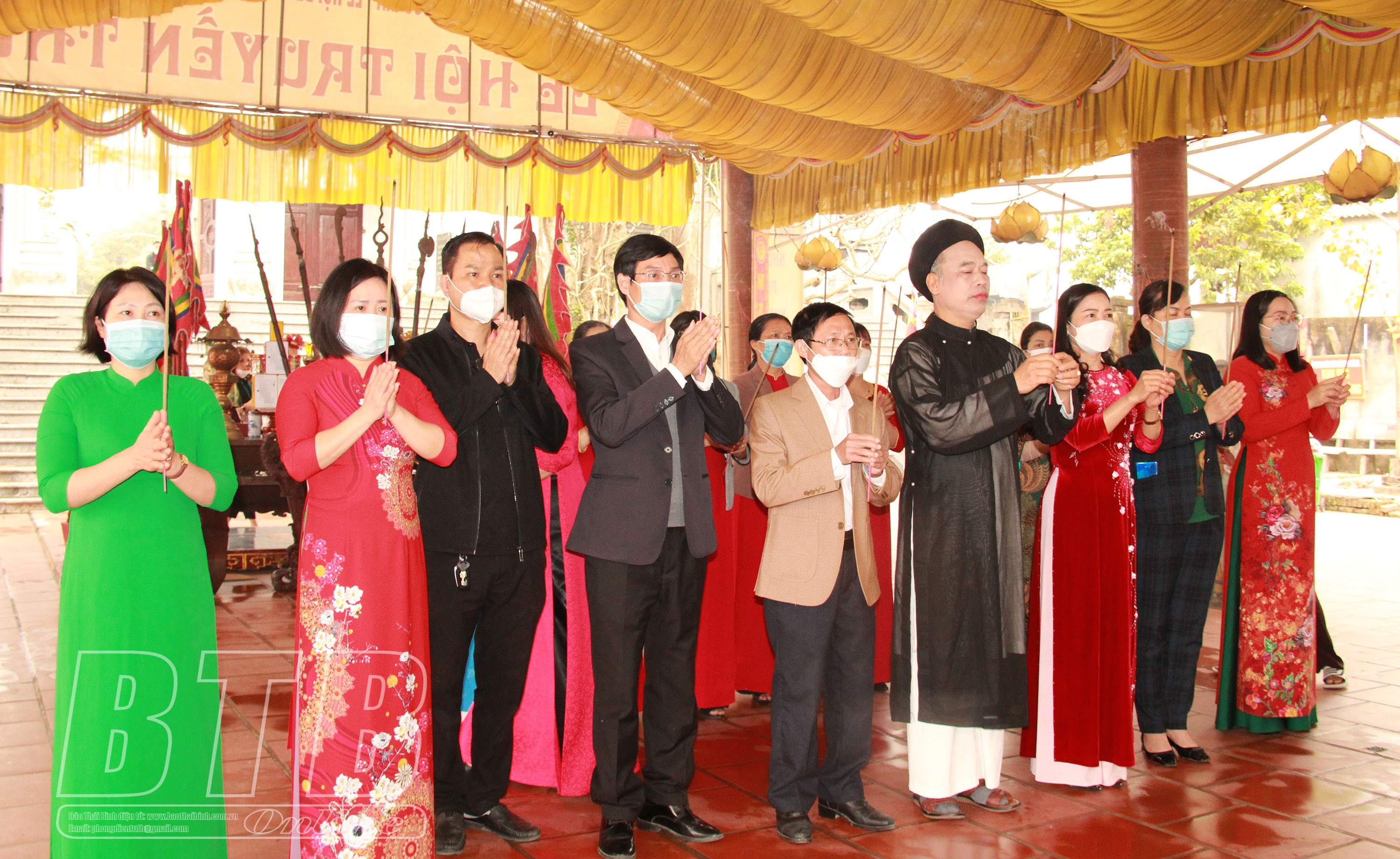 Các đại biểu dâng hương tri ân, tưởng nhớ công đức của Bát Nạn tướng quân Vũ Thị Thục tại đền Tiên La.