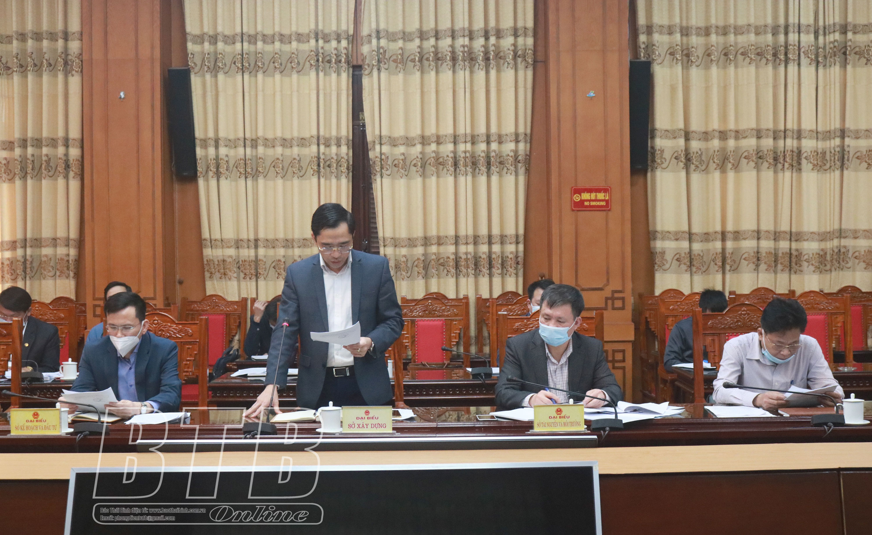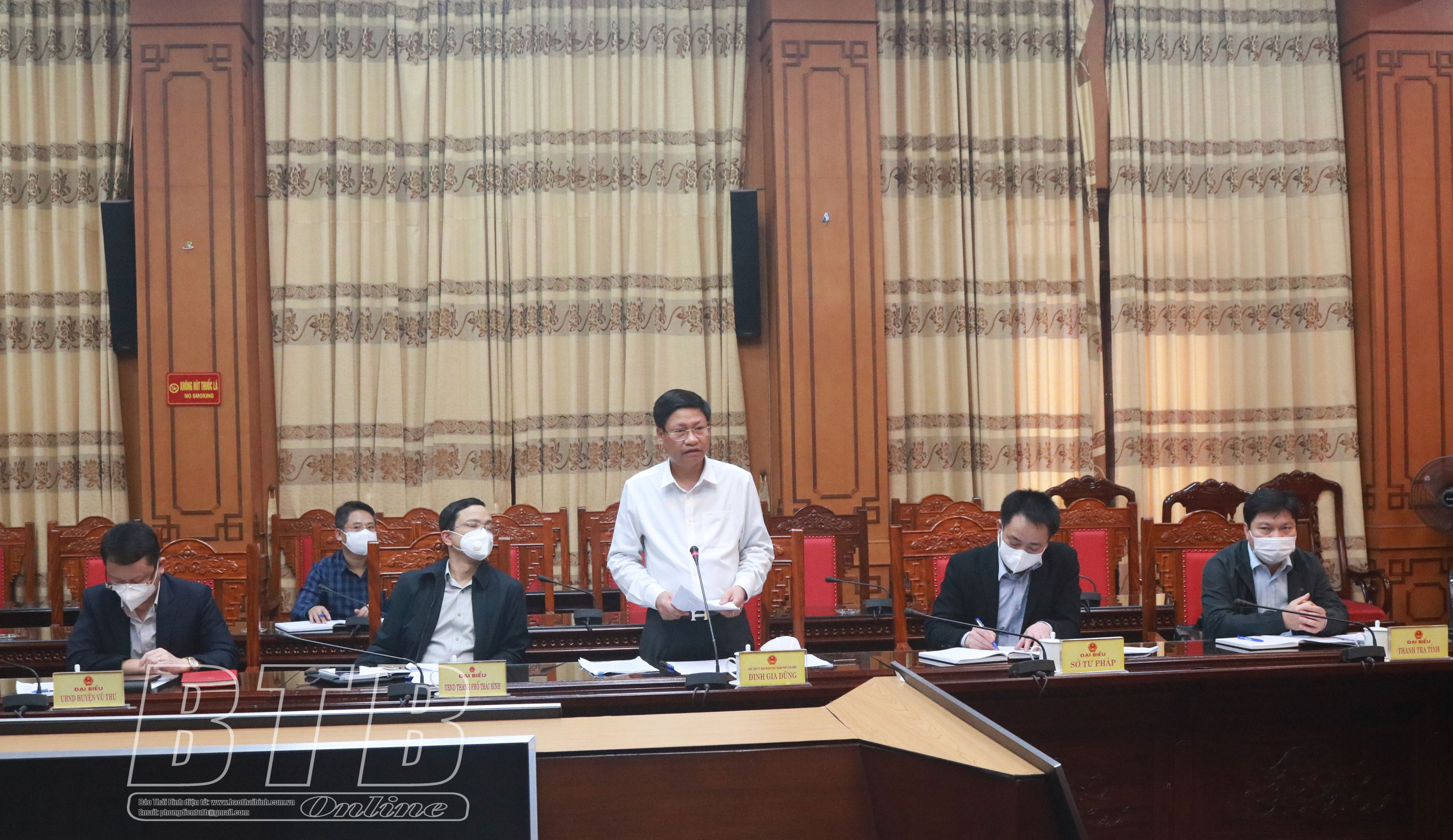 Lãnh đạo thành phố Thái Bình phát biểu tại cuộc họp.