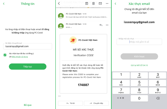 Ứng dụng PC-Covid phiên bản mới cho phép đăng nhập bằng email, giúp người nước ngoài hoặc người không muốn cung cấp số điện thoại vẫn có thể sử dụng.