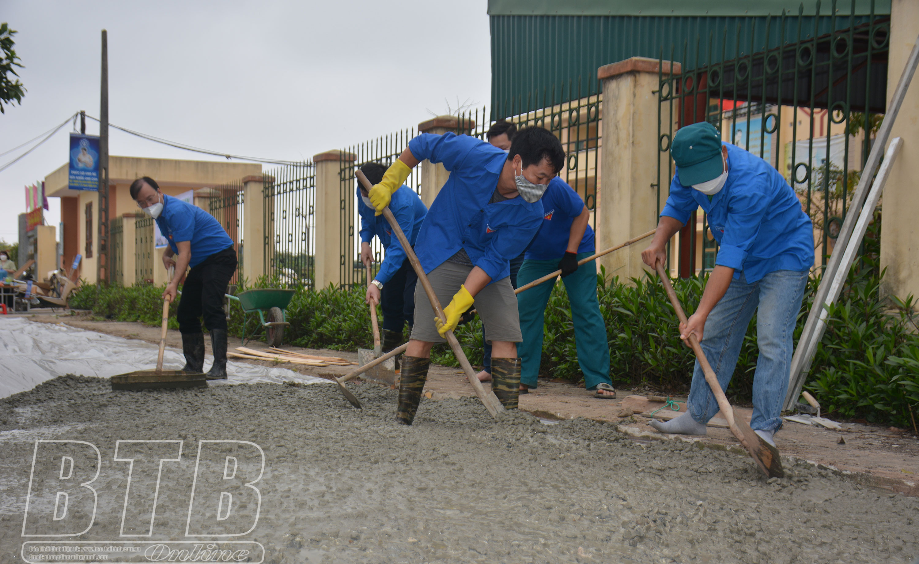 Bê tông hóa vỉa hè trước cổng Trường Tiểu học Vũ Lạc (khu B) (thành phố Thái Bình).