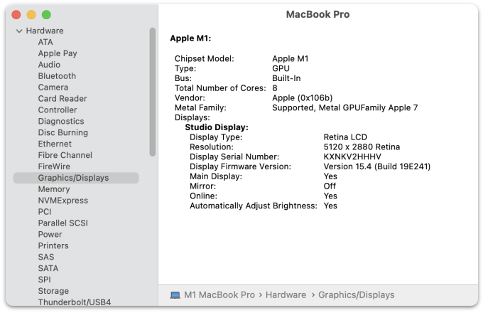 Khi truy cập thông tin về trình điều khiển của Studio Display, thiết bị hiển thị firmware được cài đặt là "Phiên bản 15.4 (Bản dựng 19E241)". Dù không nêu tên hệ điều hành iOS, tuy nhiên theo các chuyên gia, mã bản dựng cho thấy đây chính là phiên bản hệ điều hành đang được sử dụng trên iOS và iPadOS.