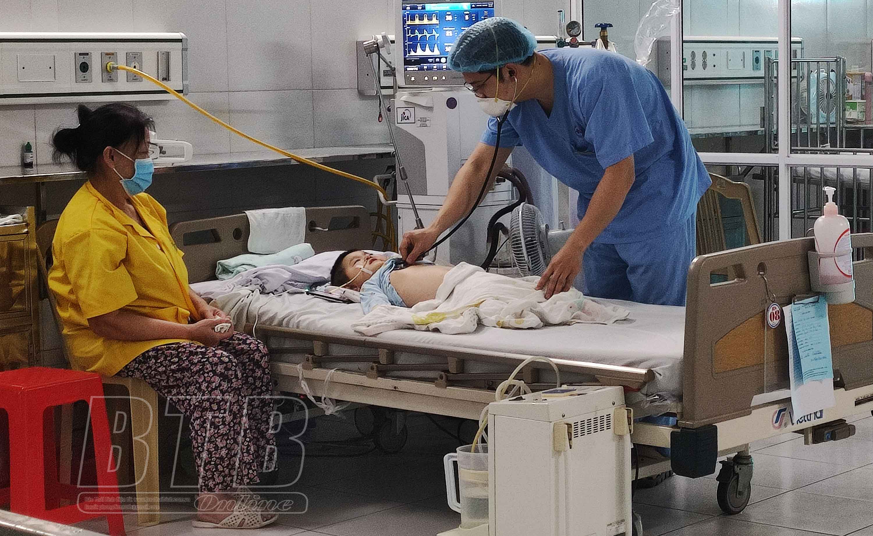 Bác sĩ Bệnh viện Nhi Thái Bình thăm khám bệnh nhân.
