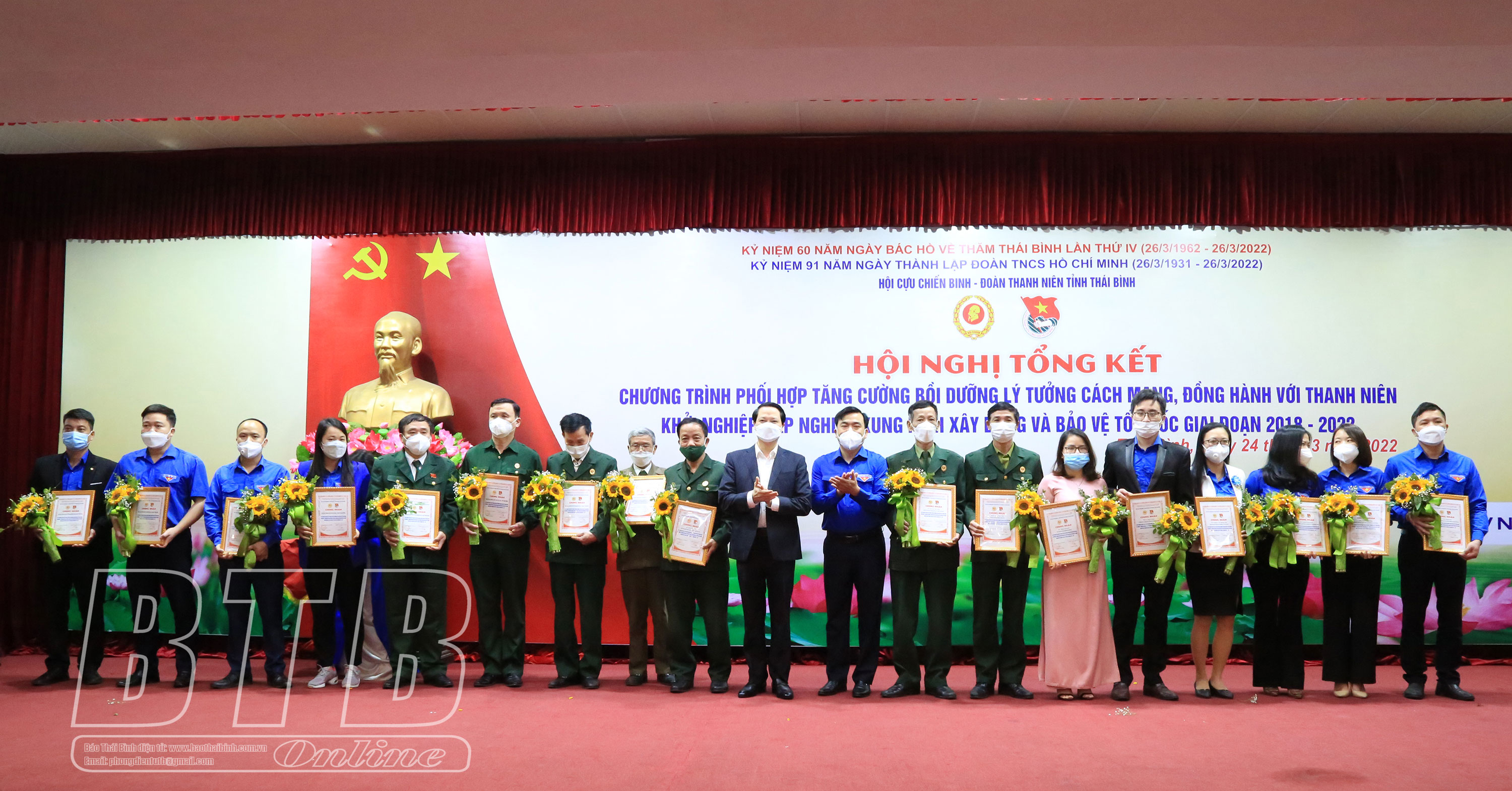 Đồng chí Hoàng Thái Phúc, Ủy viên Ban Thường vụ, Trưởng ban Nội chính Tỉnh ủy và đồng chí Bí thư Tỉnh đoàn trao bằng chứng nhận, tặng hoa các tập thể, cá nhân.