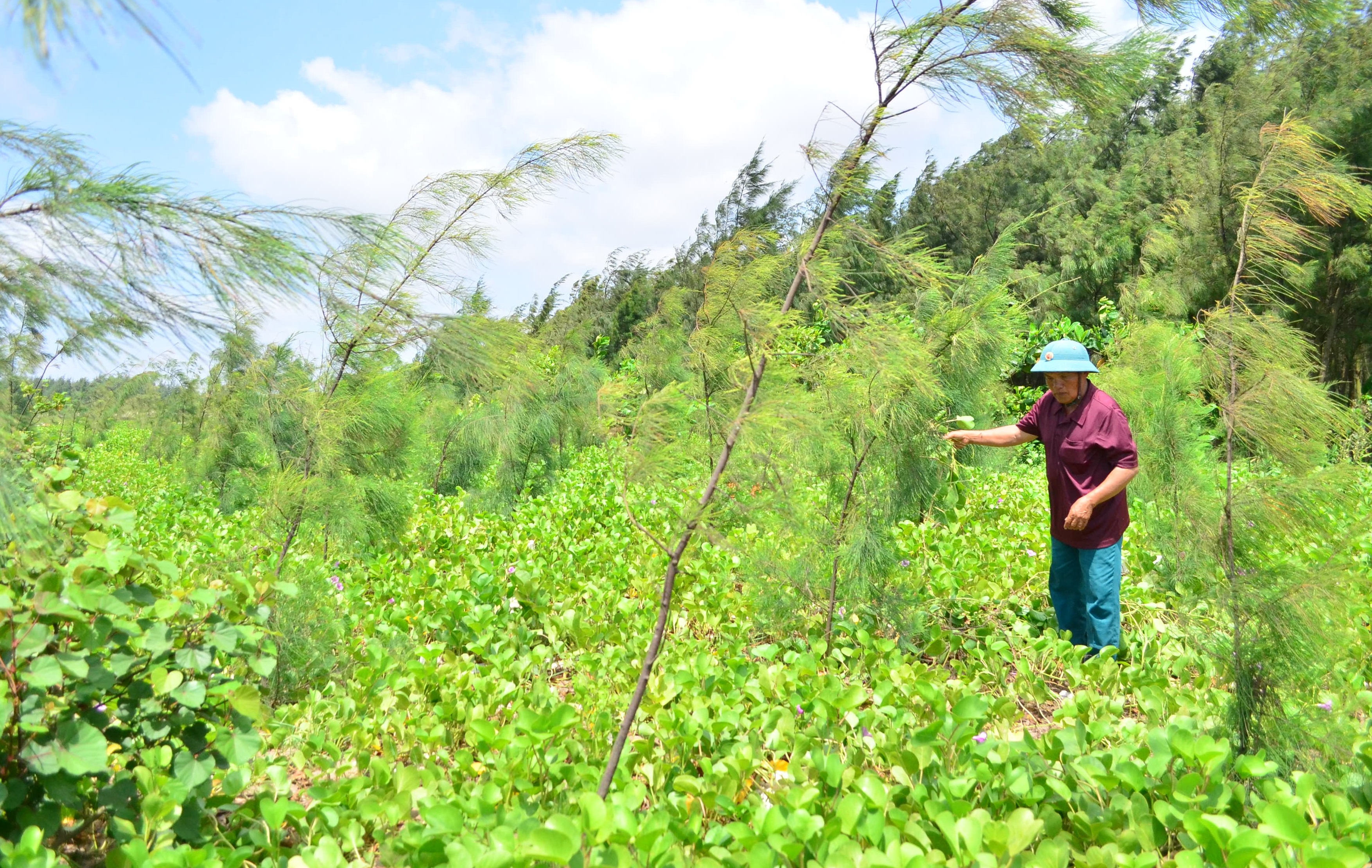 Ông Đỗ Văn Hiển, cựu TNXP xã Đông Hoàng (Tiền Hải) chăm sóc rừng phòng hộ ven biển.