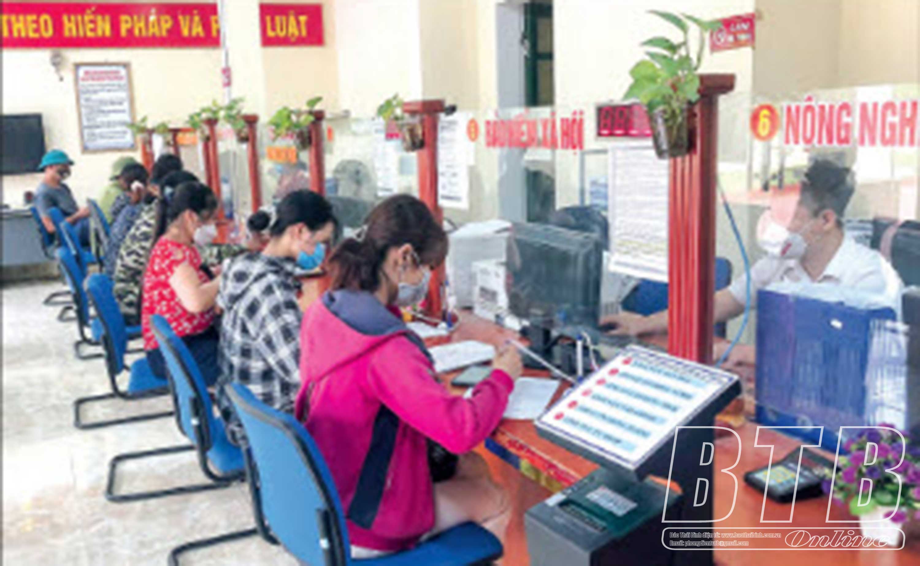 Người dân giải quyết thủ tục hành chính tại Bộ phận tiếp nhận và trả kết quả huyện Quỳnh Phụ.